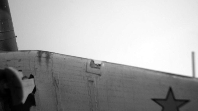 Даже не смотря на то, что самолет уже не летает, сколы появились раньше (или почему не скололся весь металл?) Даже на ч/б фото видно отличие цвета зеленого от цвета повреждений.
