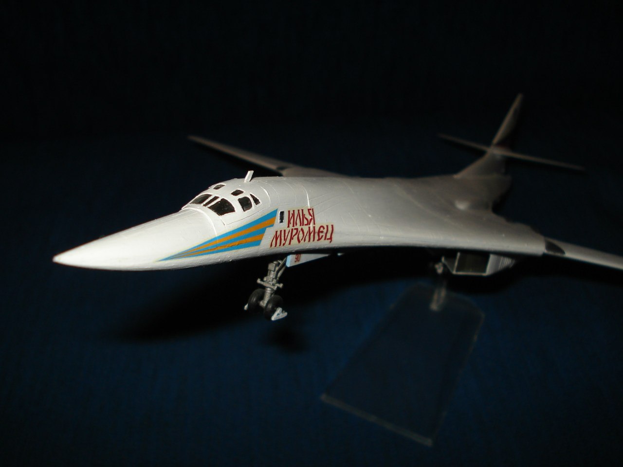 К сожелению набор от звезды мало напоминает лебедя, окраска ниш и бомболюков конечно полная отсебятина, при такой деталировке вообще нестоило бомболюки открывать, к тому же лебедь ведь вовсе и не белый весь, он разных оттенков особенно на радиопрозрачных элементах, а Илья Муромец он один из самых облезлых лебедей, и все эти оттенки белого и светло серого на нем видно отлично.