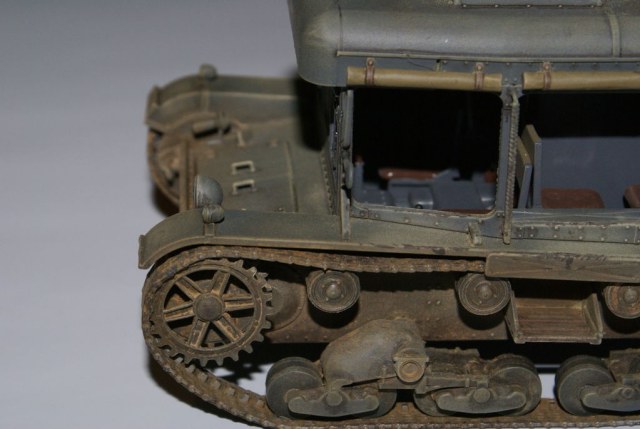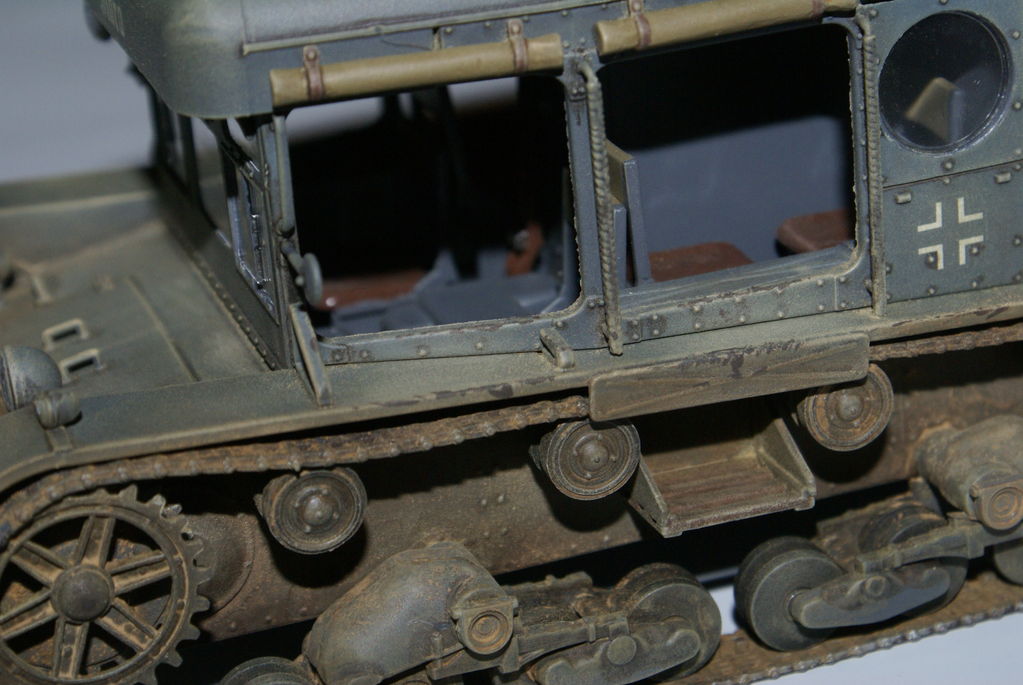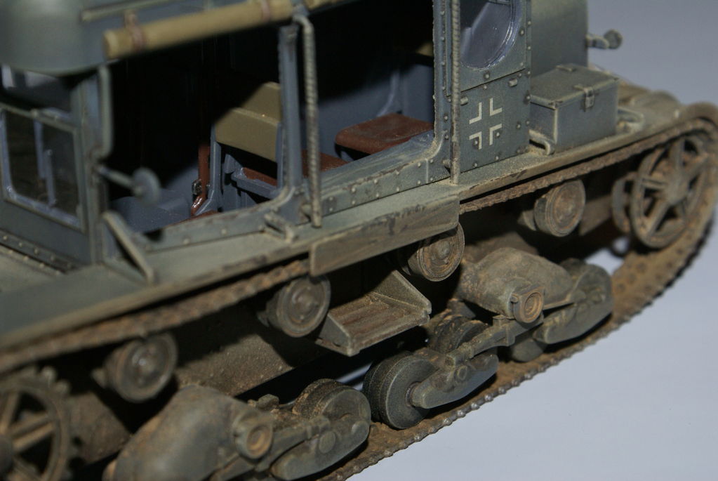 В целом, очень неплохо получилось. Насчет корпуса не знаю, но вот ходовая у поляков для всех моделей "унифицированная" и на реальную похожа процентов на 35. Так что ходовую пилить-неперепилить. Бросается в глаза неправильное положение хомутов на осях тележек и оси были полые, т.е. на хомутах надо было выверлить отверстия. Ну и польские резиноподобные гусеницы - это что-то с чем-то. Как Вы на них умудрились хоть какую-то тонировку положить, ума не приложу...Так что за борьбу с "Миражем" - респект (сам пилил, так что - знаю))))). Вообще у поляков очень интересные и редкие модели бронетехники, но качество наборов просто убивает....