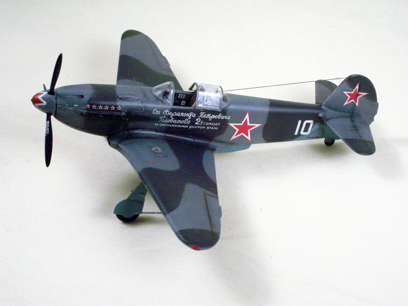 Модель Ваша нравится. Хорошо покрашена, может быть низ чуть посветлее бы? ПВД надо поправить, чуть подогнули. Ниже 2 фотографии этого самолета. На одном нет победных "звезд" над выхлопными трубами, на другой добавлено цифрой "2 - й". Вопрос к производителю декали. Кто прав?