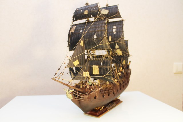 Здравствуйте! Модель понравилась! Свет, цепи на якоря, пираты, окрас под дерево. Все хорошо! Но вот по флагу т.к. я сам думаю как его сделать может взять ткань в неком клею ее промочить придать форму и после того как застынет установить... будет как на ветру колышется... а сам рисунок что надо! Удачи