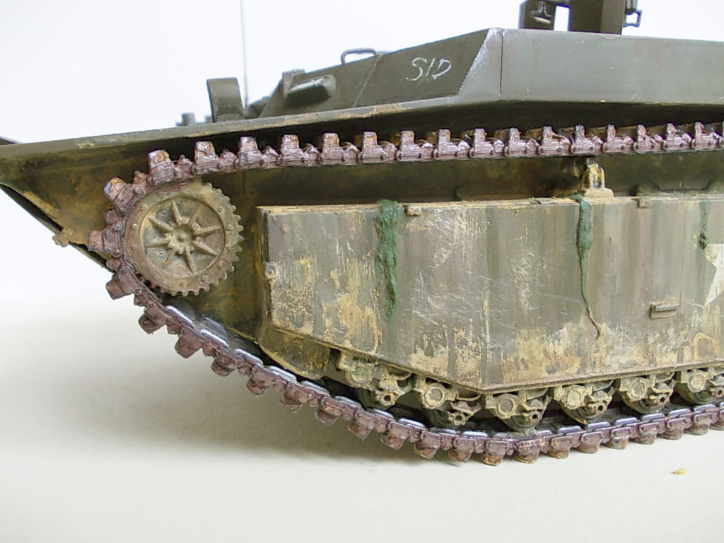 Немного поборолся с жесткими гусеницами,не хотели склеиваться,но вроде благополучно установил.Натяжение нереально убрать(