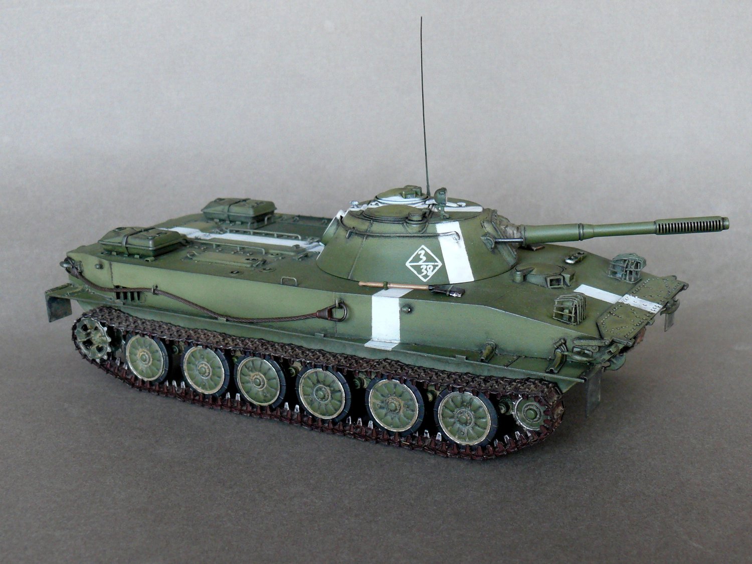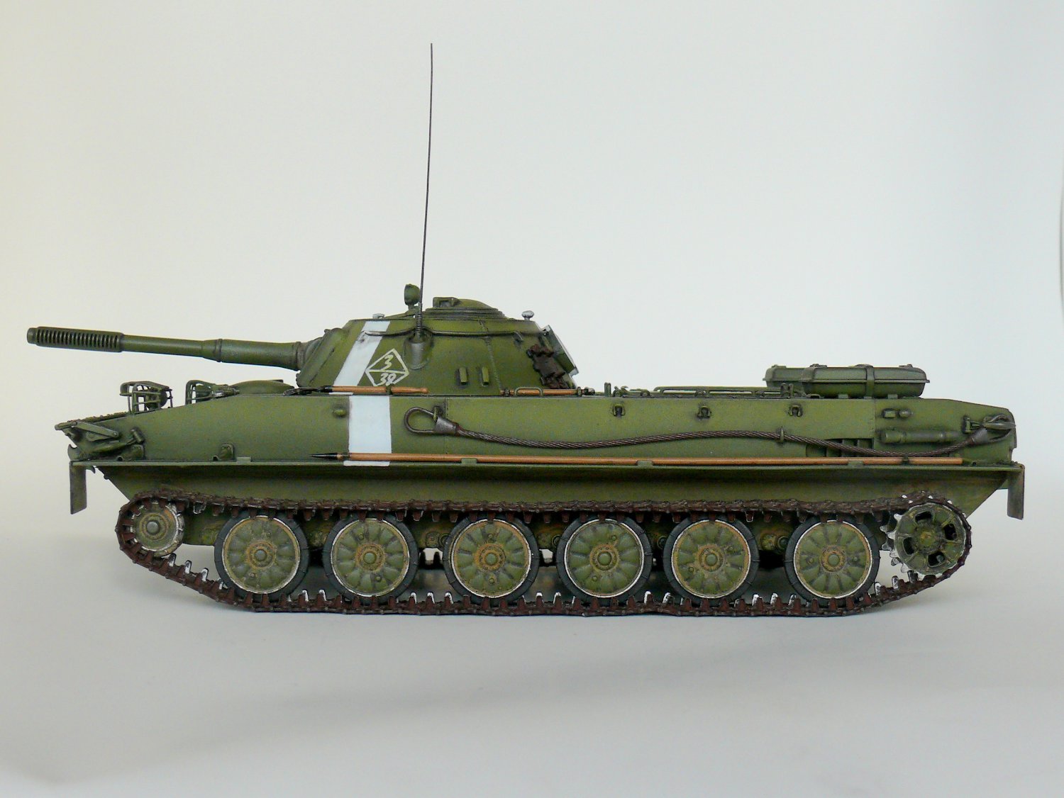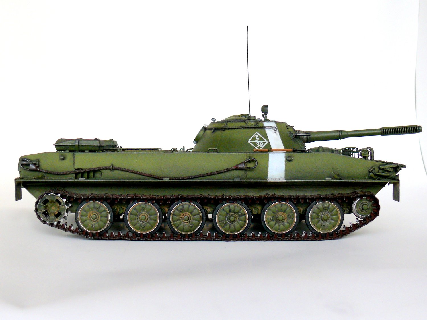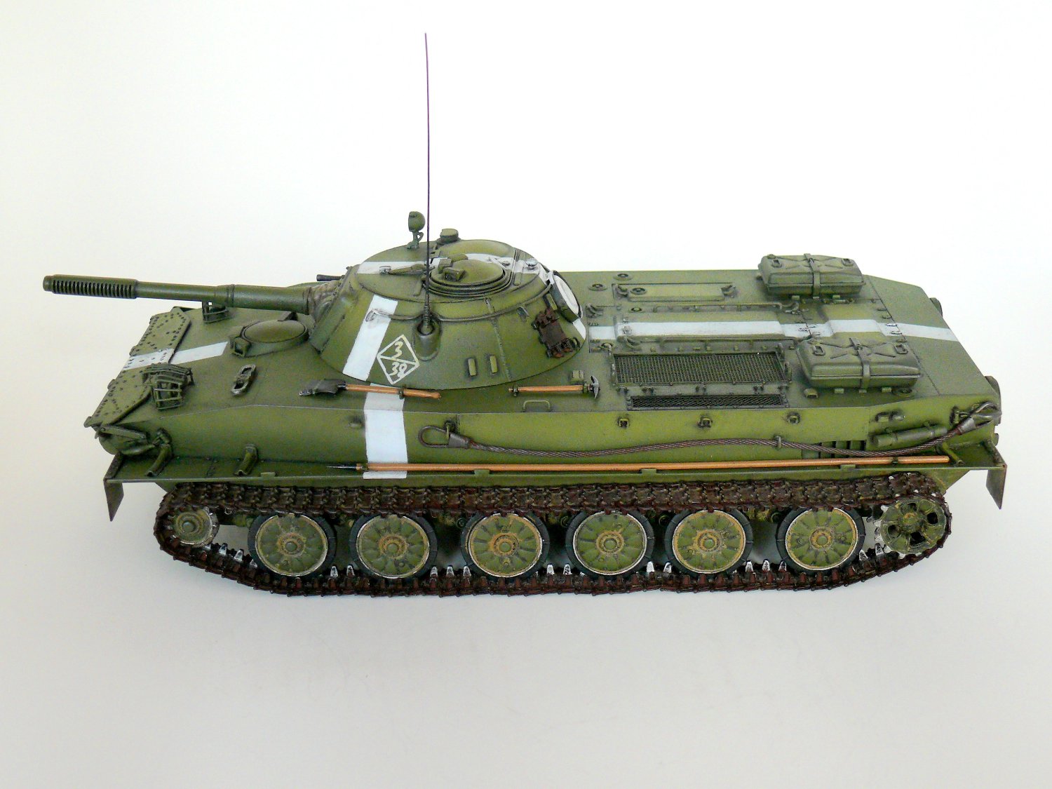 Представляю очередную свою работу. На этот раз перешел в раздел современки. Выбор пал на ПТ-76 от Тубача. Очень неплохая модель на мой взгляд. Не обошлось конечно без доработок,ну куда же без них. Трамп позиционирует свой кит как образца 51 года. На самом деле в коробке лежит ПТ-ка выпуска до 54 года с проведенным комплексом работ по частичной модернизации 55-64 г.г. в ходе которых были заменены опорные катки и доп топливные баки. Есть еще одна деталь которую необходимо было править-это днище с выштамповками,которые появились в 59 году. Стачиваем их...