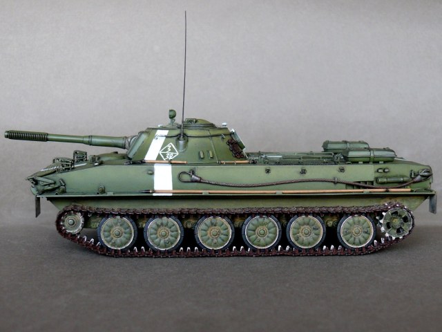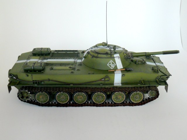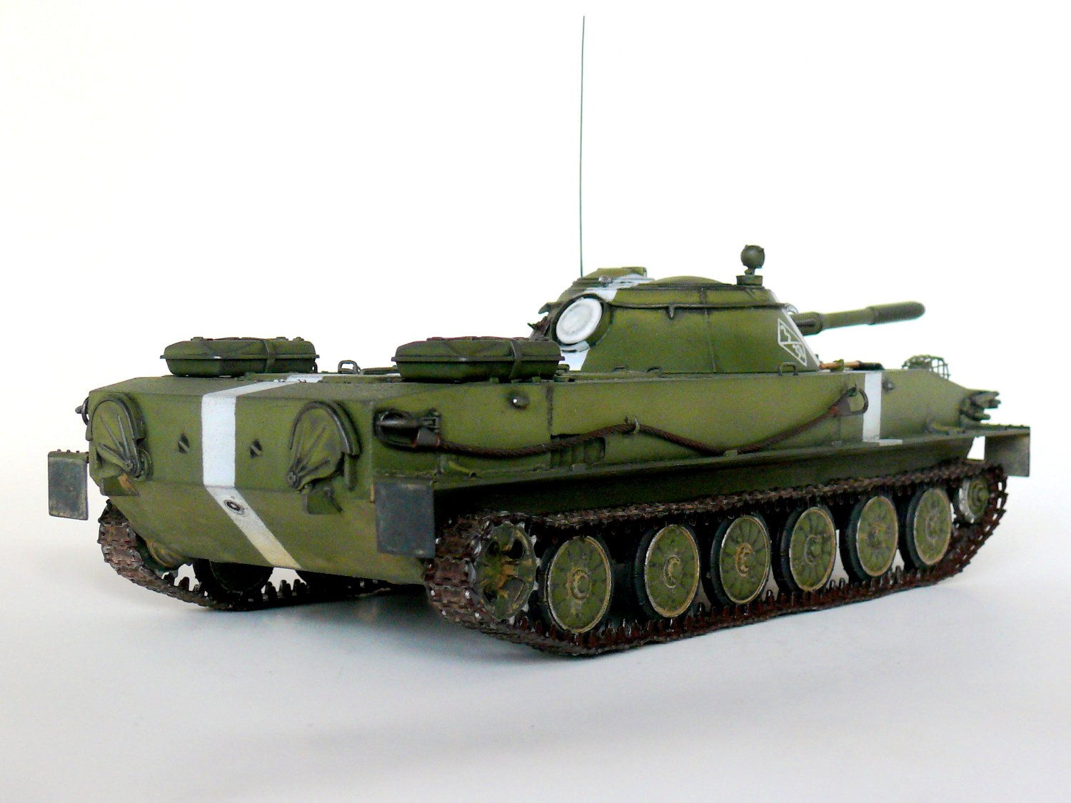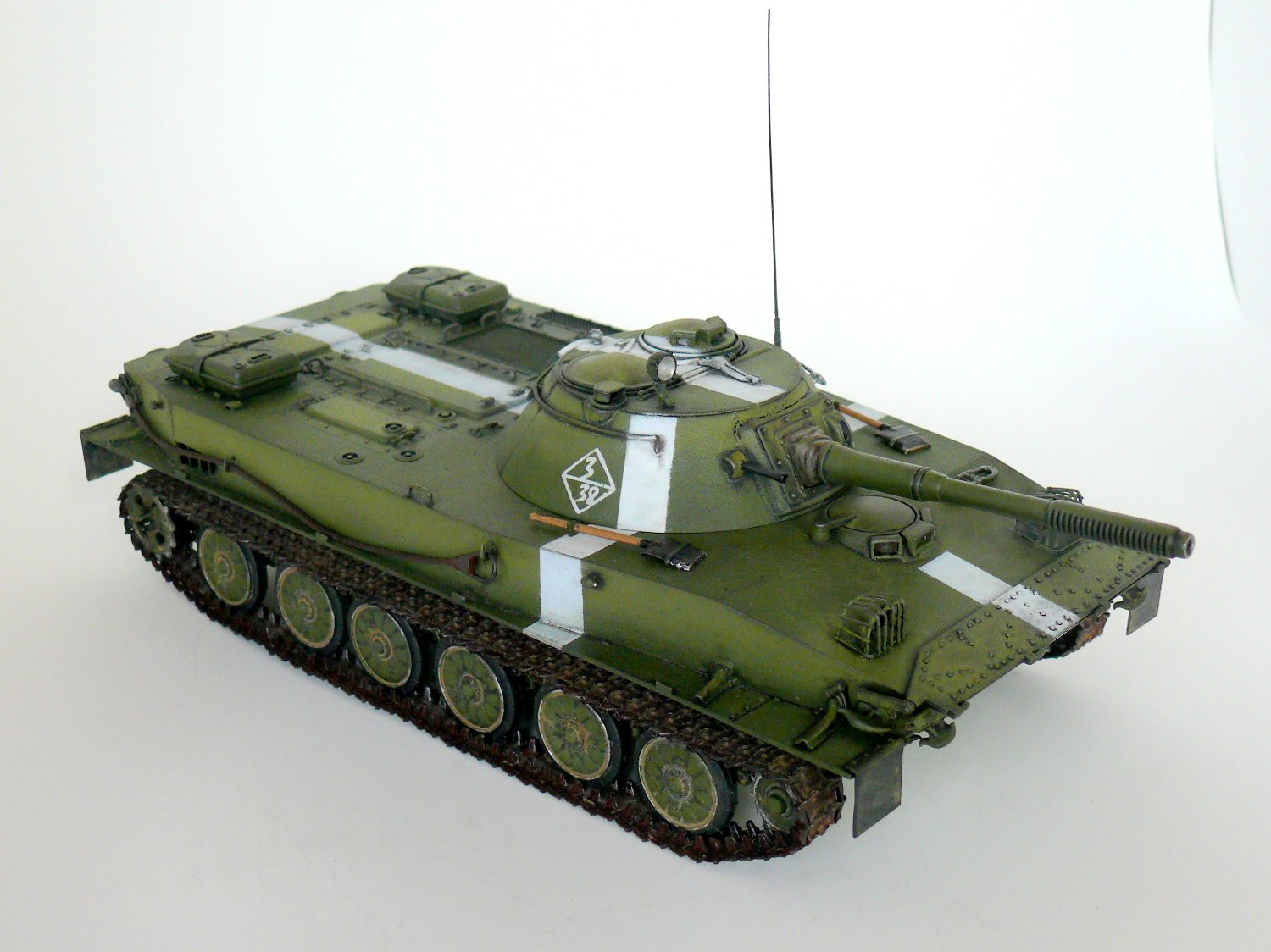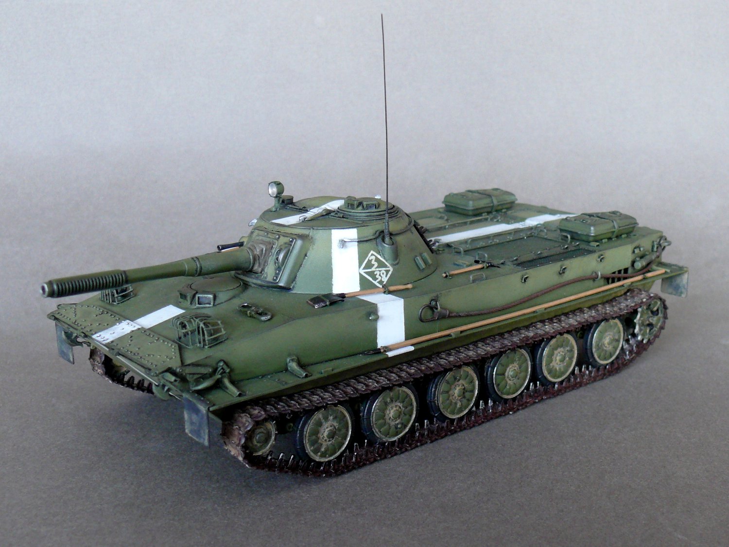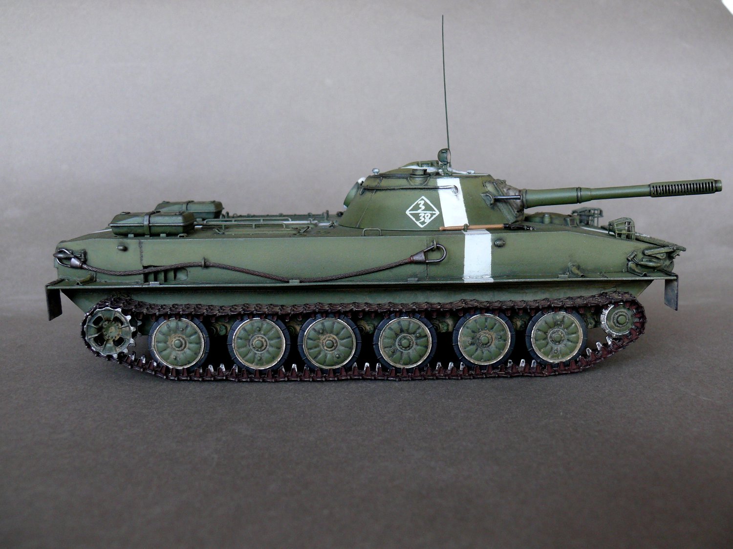 Представляю очередную свою работу. На этот раз перешел в раздел современки. Выбор пал на ПТ-76 от Тубача. Очень неплохая модель на мой взгляд. Не обошлось конечно без доработок,ну куда же без них. Трамп позиционирует свой кит как образца 51 года. На самом деле в коробке лежит ПТ-ка выпуска до 54 года с проведенным комплексом работ по частичной модернизации 55-64 г.г. в ходе которых были заменены опорные катки и доп топливные баки. Есть еще одна деталь которую необходимо было править-это днище с выштамповками,которые появились в 59 году. Стачиваем их...