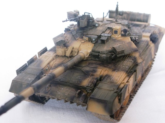 Выставляю на обозрение модель Российского основного боевого танка Т-90 от фирмы "Звезда"в масштабе 1/35, кат.№3573.Появление данного кита любители бронетехники ждали давно.Качество модели порадовало,сборка особых проблем не доставила. Модель собиралась из коробки от себя добавлена антенна. Окрас и тонировка производились красками фирмы Тамия, пигментами фирмы "МИГ", а также художественными красками.