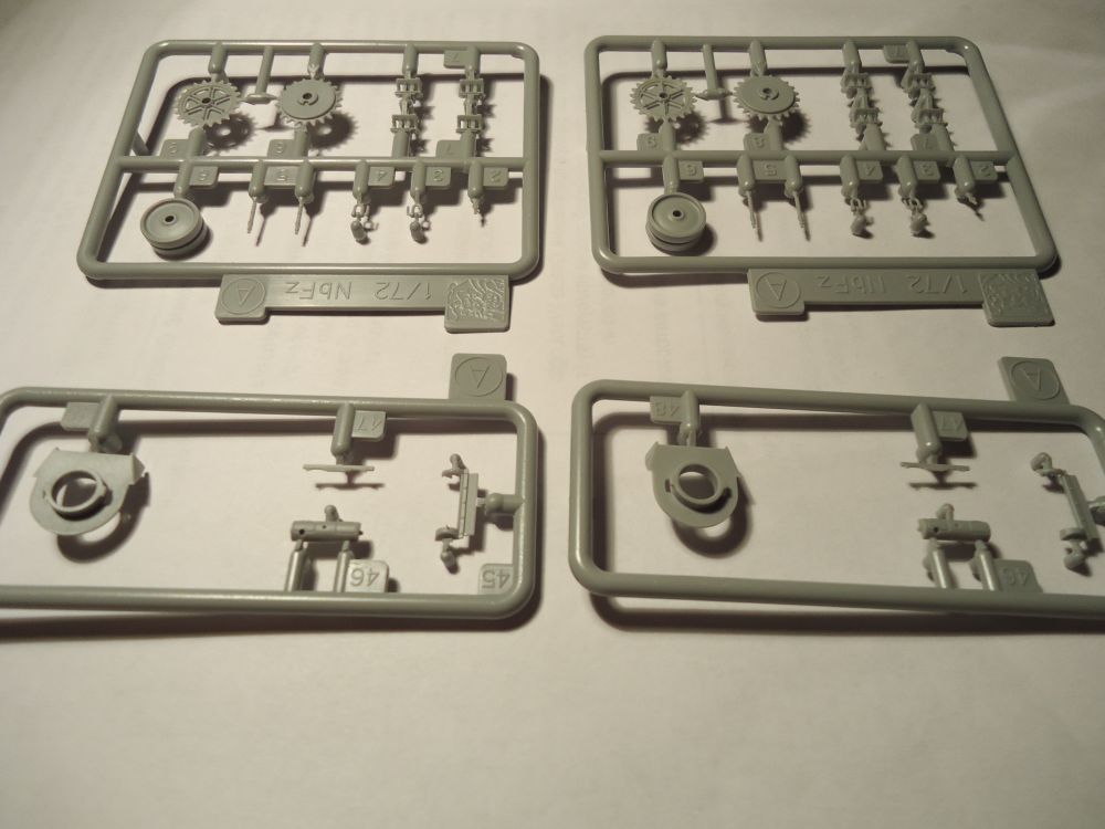 набор оставляет приятные впечатления, четкая и подробная отливка (например, понравились стволы пулеметов очень). деталей не так много как я думал для такой немаленькой в общем то машины: два больших литника и четыре маленьких. башни и верхняя деталь корпуса даны в отдельных пакетиках. гусеницы обычные дрегоновские, декаль на пять вариантов, которые отличаются практически только номером. травление в набор не входит. надо будет поразглядывать картинки и фотки, поискать что такого можно из мелочевки доработать