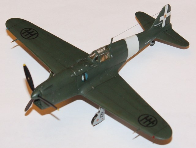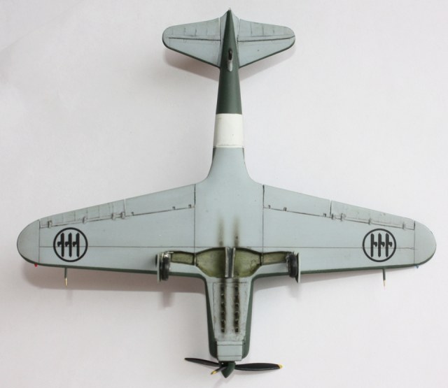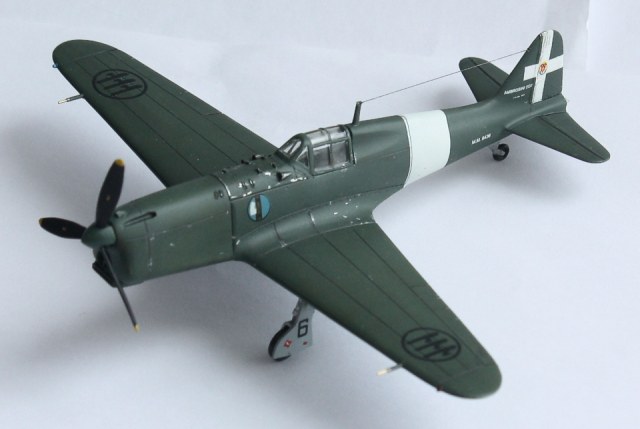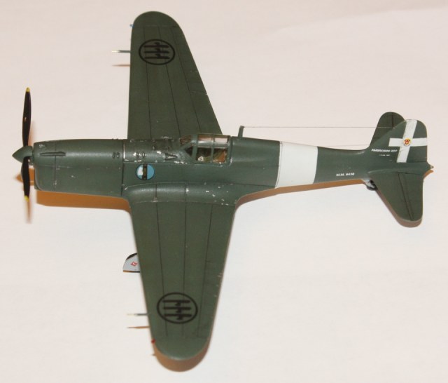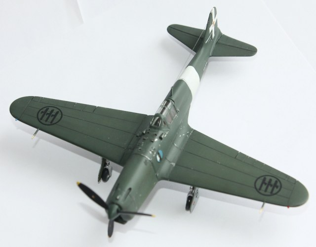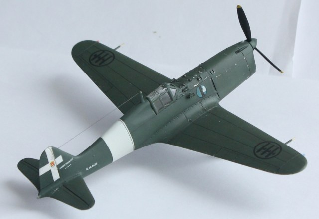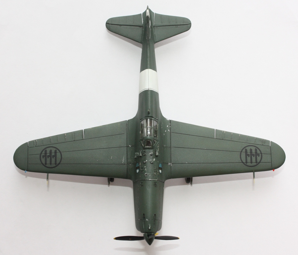 Окраска: "прешйдинг" - Tamiya XF-1; интерьер - Tamiya XF-21:2 + XF-5:1; низ –Tamiya XF-2 + XF-66; верх –Hobby Color H302 Verde Mimetiko2 FS34092. «Постшейдинг» - краска более тёмного оттенка. Потом покрыл футурой, нанёс декали, опять футура и смывка – «MIG». Состарил ЛКП с помощь фильтров. Финишное покрытие – Х-22 с наполнителем Х-21. Нанес нагар. Антенна – волос.
