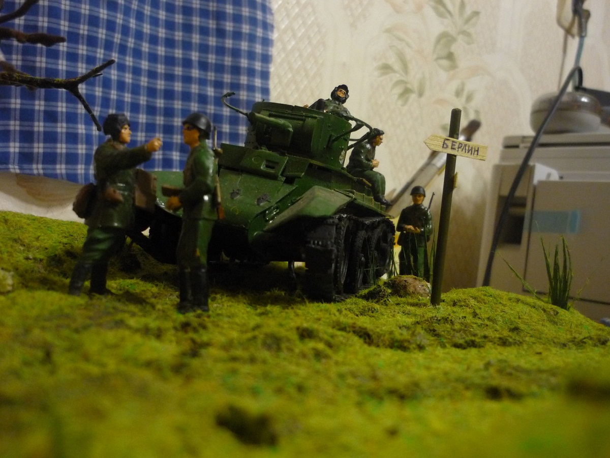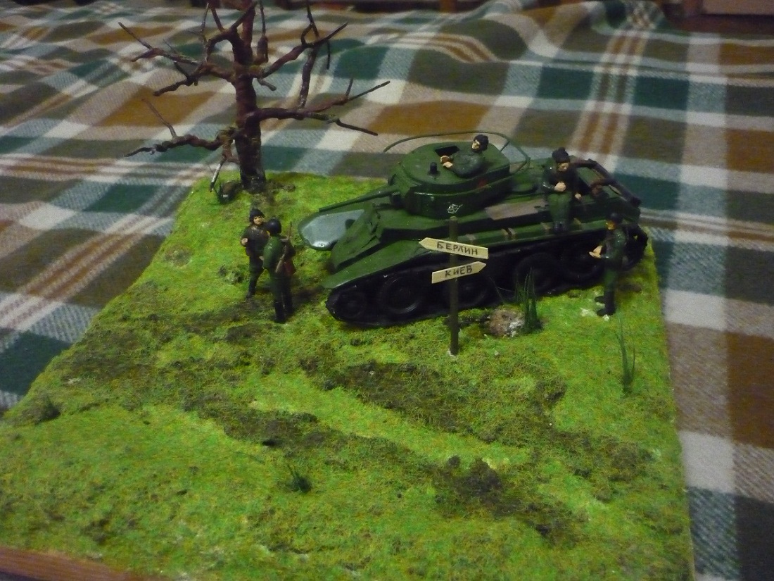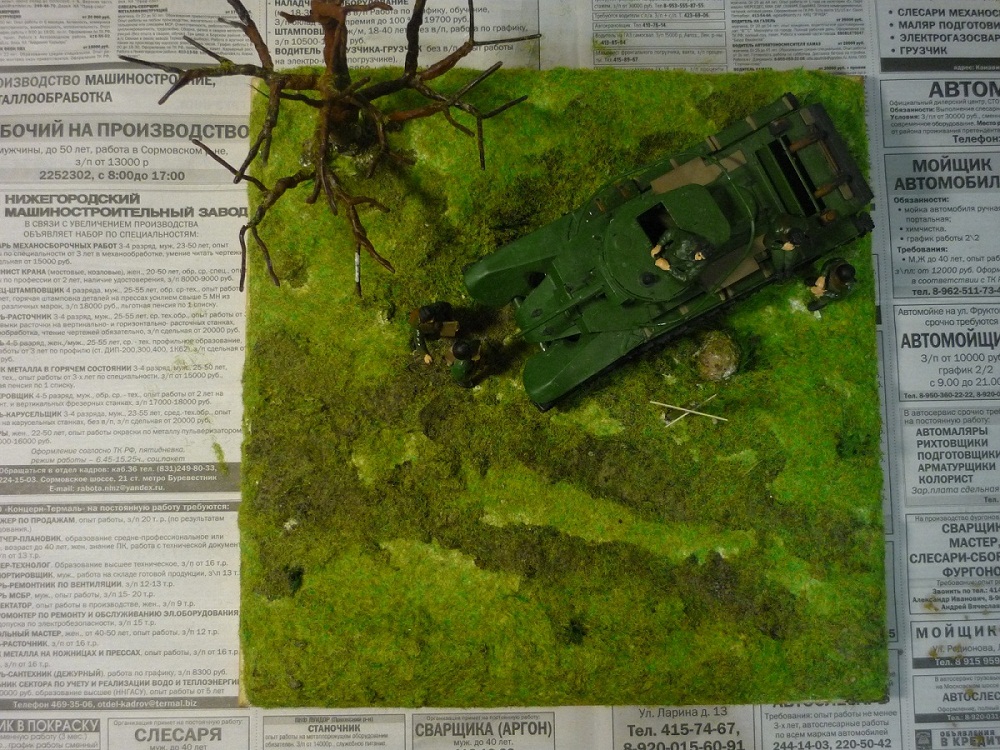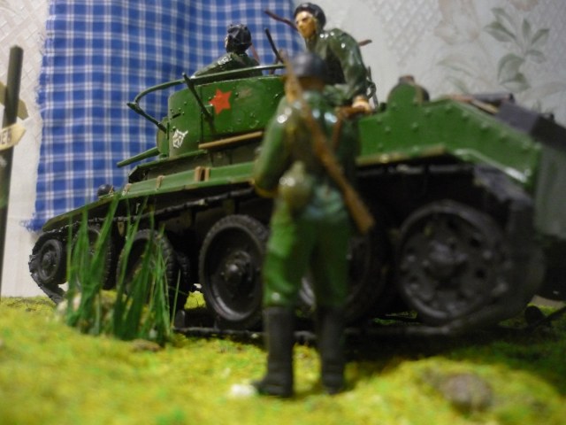 Танк, зеленкой не поливали? Ну во первых как я уже узнал БТешка тяжелая модель, Диорамы делать очень трудно, супер клей на башне где-то 0,5мм краски, щель. И тд и тп. ......