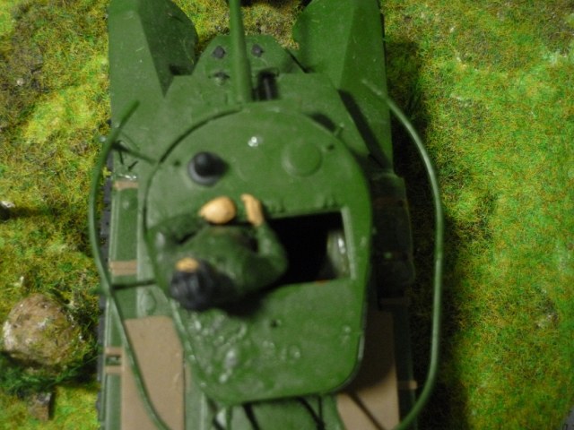 ...Ой,а танкисту в спину не дует?Мало того,что крыша башни приклеена не ровно и не вровень бортам,так ещё и кормовой дверцы нет начисто.Я очень сомневаюсь,что при потере дверцы танк будет воевать дальше.