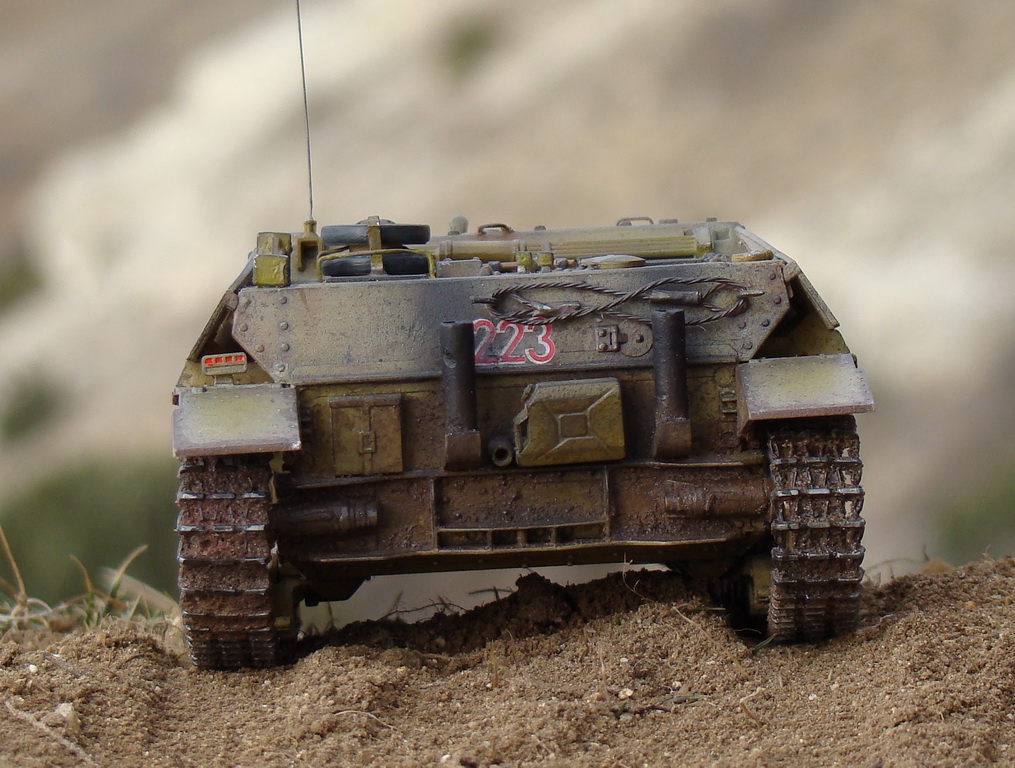 Итак сборка по инструкции, после прешейдинг ржавым цветом по углам и нишам, затем основной цвет Тамия XF-60, смывка акварель + пастельные мелки, тонировка сухие мелки, грязь сода +акрил по цвету + вода, ну еще сухая кисть, лак Mr.Color181. Ну вот вроде и все.