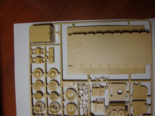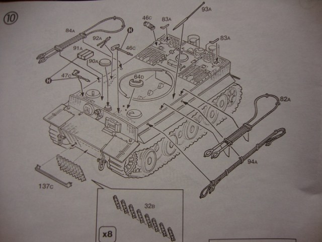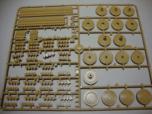 Моделька выглядит ничего.Думаю траки можно поставить от Драгоновских Тигров Мэджик трак.Цена на барахолках от 200 до 350 рублей и выглядят класс.Имеет смысл поспрашивать кто собирал Драгоновские тигры там куча запчастей остаётся может чего пригодится.Фара или шанцевый инструмент с тросами.