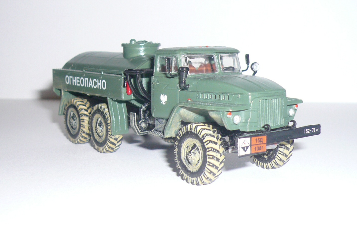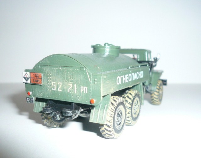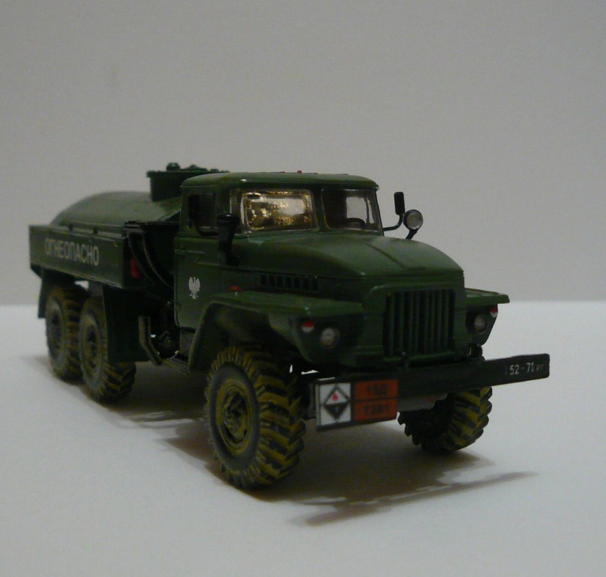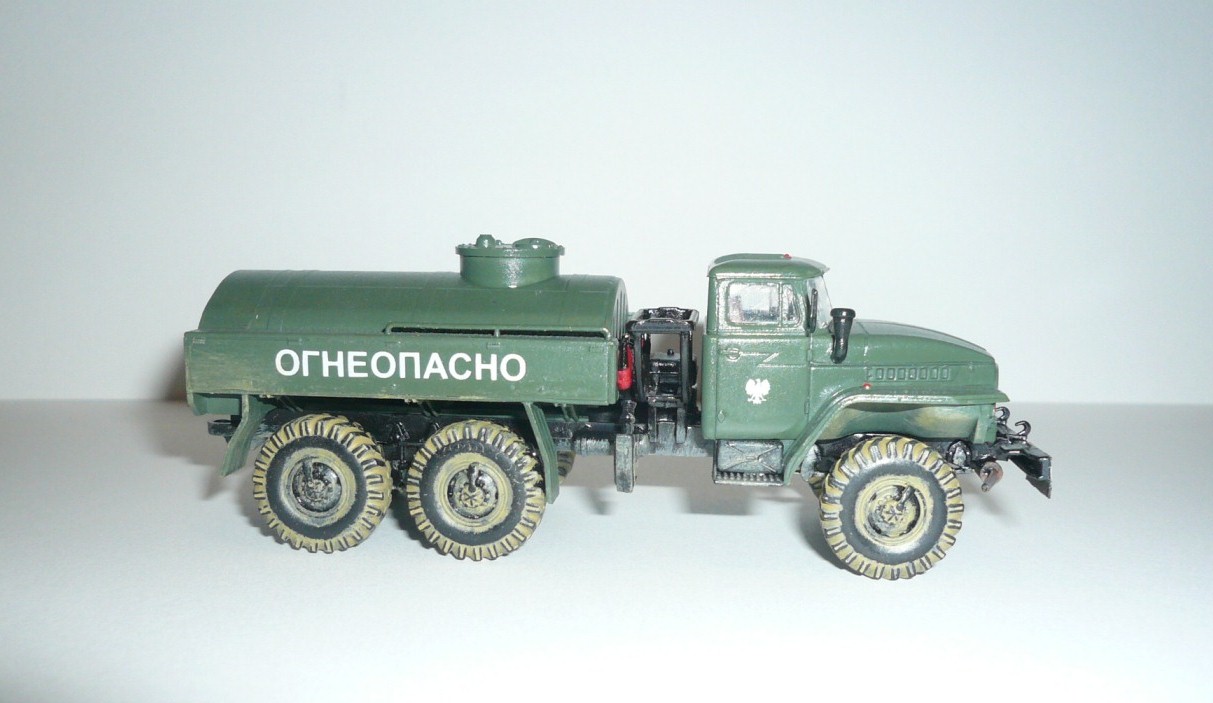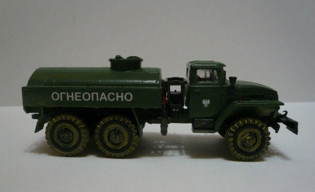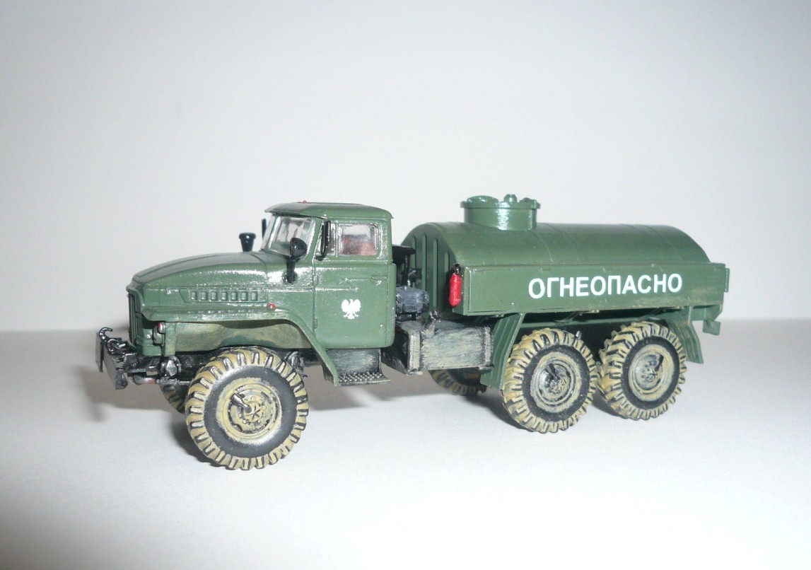 Хорошая такая изкоробка,немножко не вяжется между собой надпись огнеопасно,наши номера и эмблема войска польского.На следующей модели попробовать тонировку,смывку и потом уже пачкать.