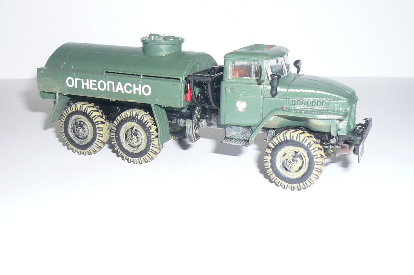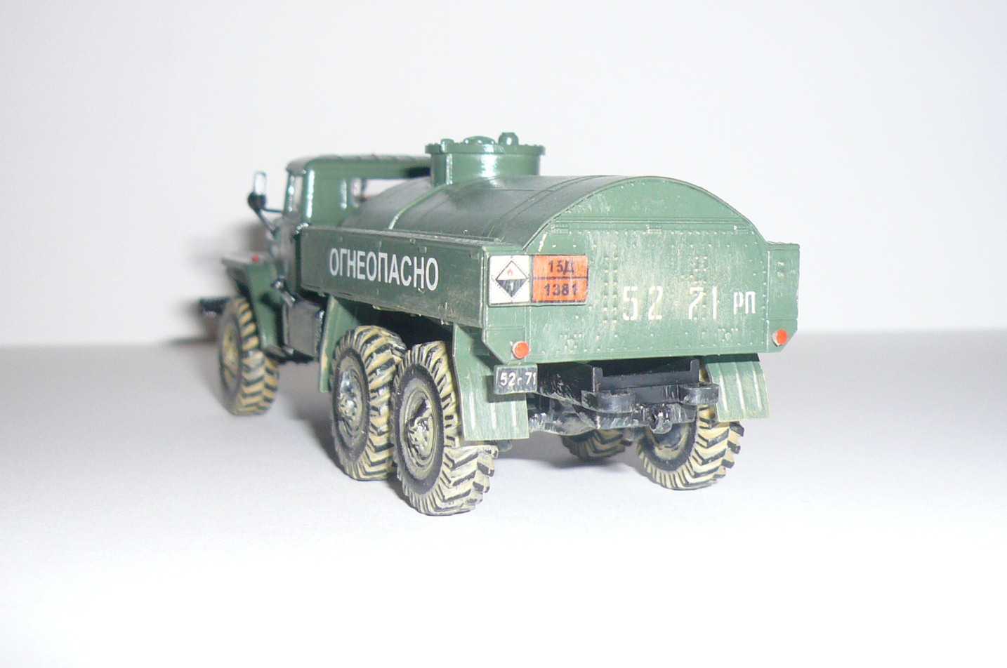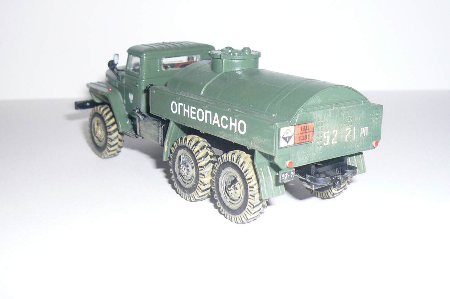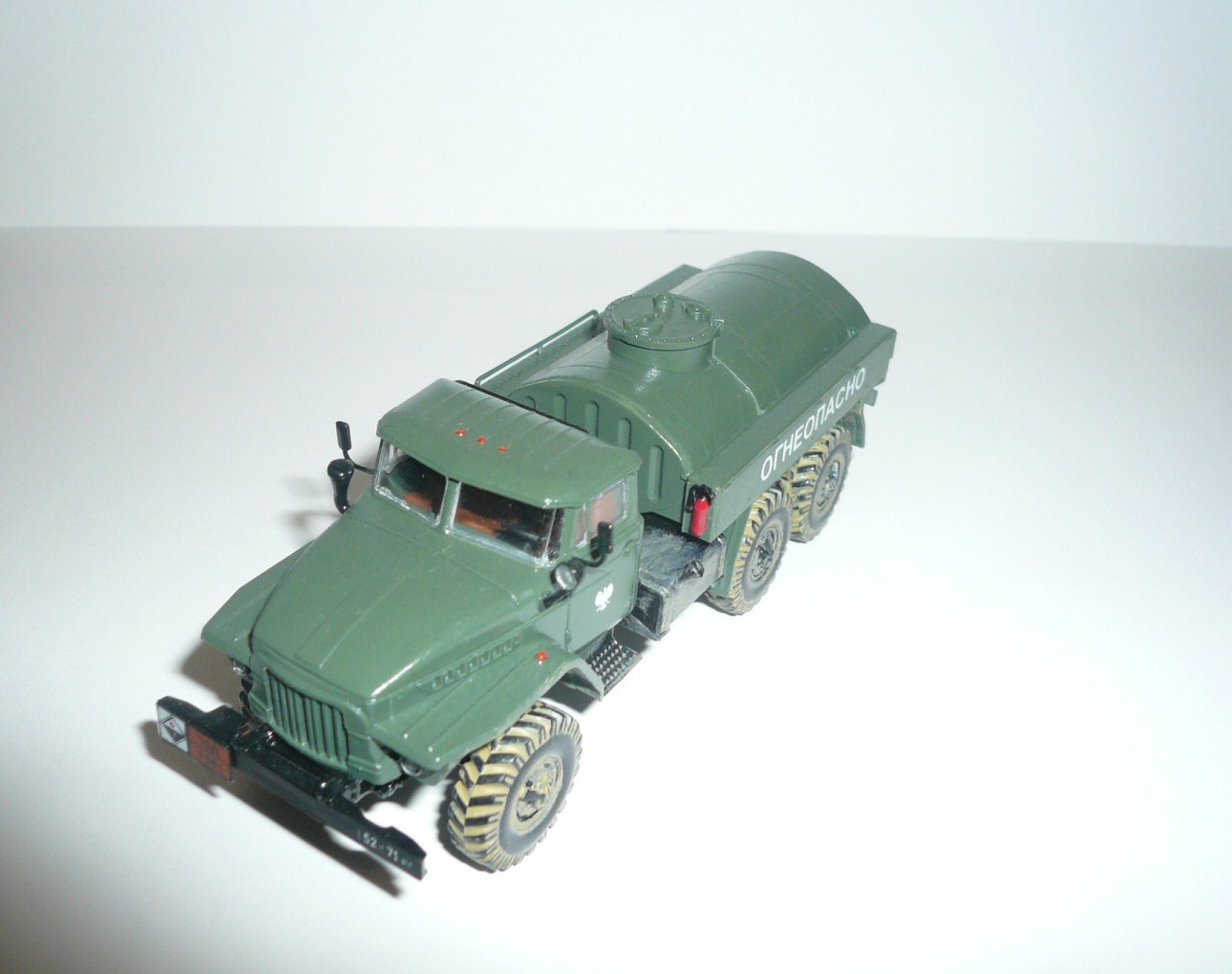Хорошая такая изкоробка,немножко не вяжется между собой надпись огнеопасно,наши номера и эмблема войска польского.На следующей модели попробовать тонировку,смывку и потом уже пачкать.
