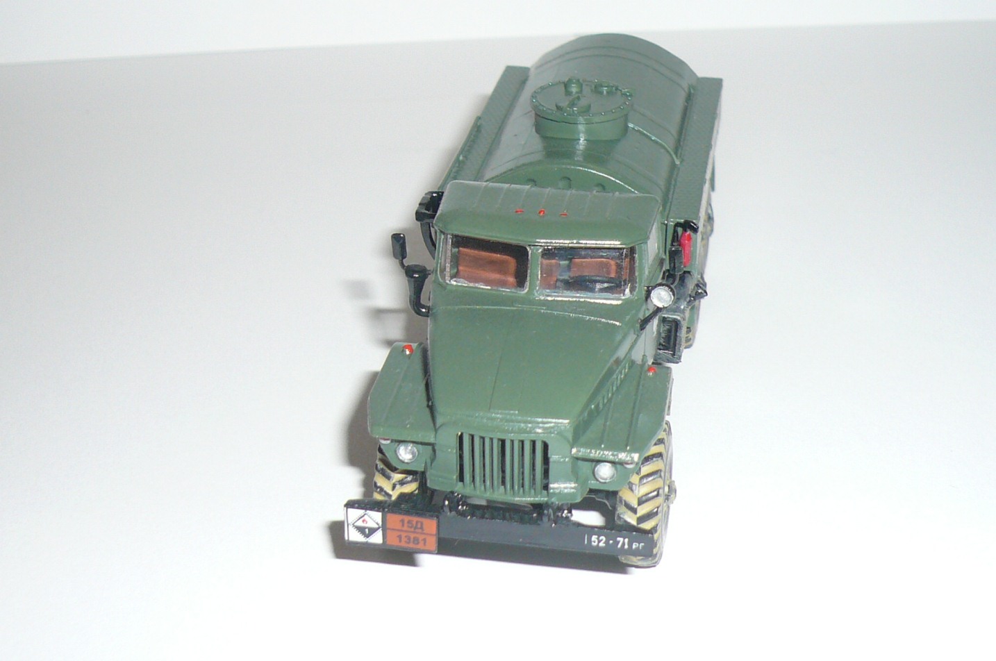 Слой краски большой, или просто блеска много, в цвет не совсем попали,колеса слишком грязные, и никак не вяжется с чистотой остального кузова,тем более аэродромные топливозаправщики такими грязными не бывают(колеса)