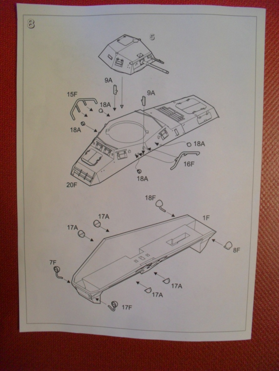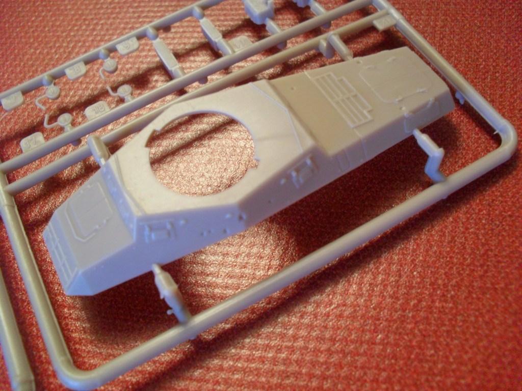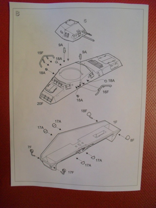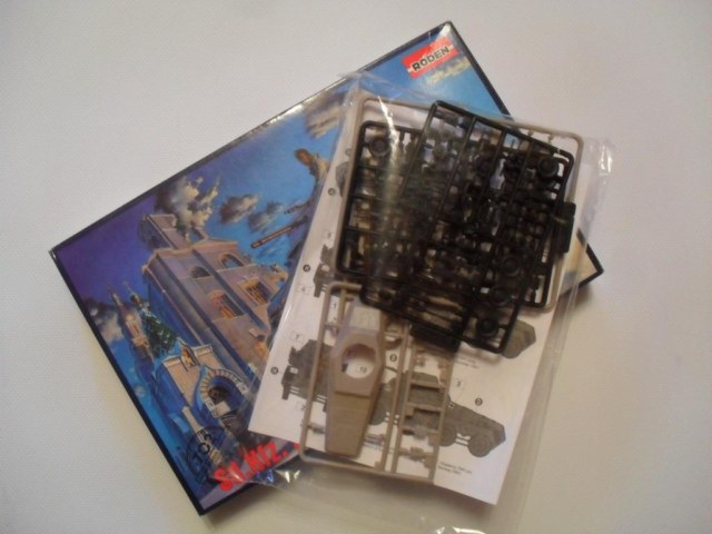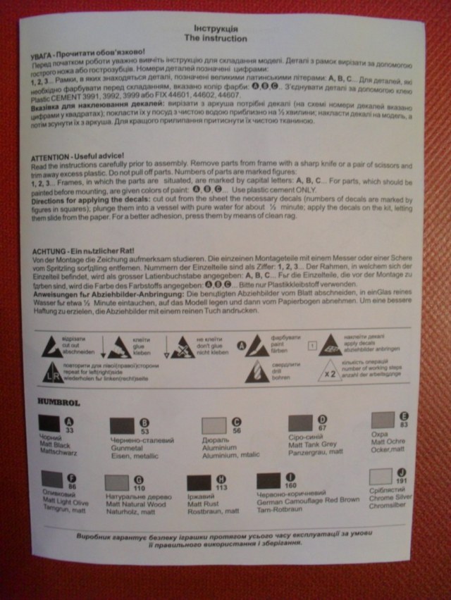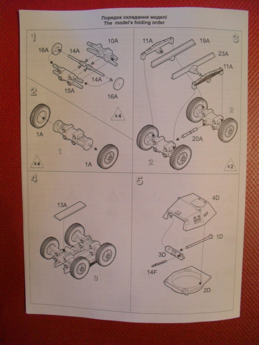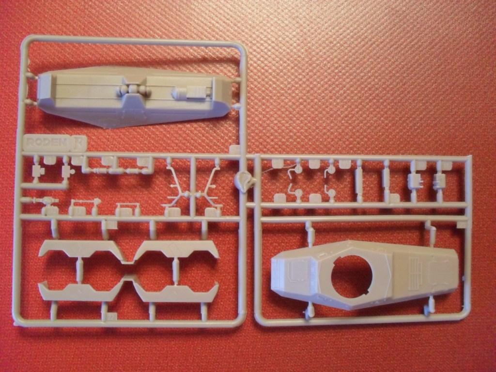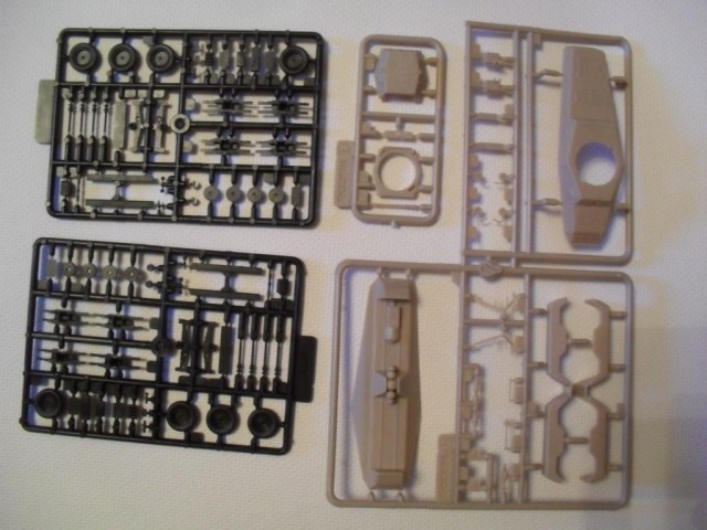 В картонной коробке размером 250*160*35с боковой загрузкой находится запаянные в общий целлофановый пакет четыре литника с деталями для сборки Тяжелого разведывательного бронеавтомобиля. Два литника черного цвета содержат 46 деталей элементов ходовки. Отливки четкие непроливов и утяжин нет. Следы толкателей вынесены на литьевую рамку. Еще два литника содержат 4 детали башни и 23 детали бронекорпуса. Инструкция на 8 страницах понятная и подробная. Декаль позволяет сделать бронник в трех вариантах.