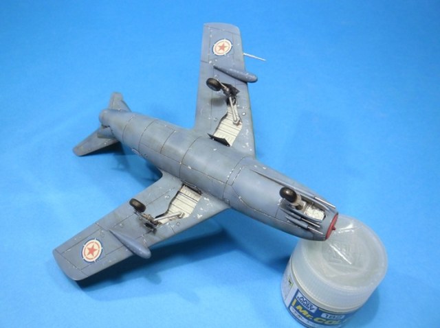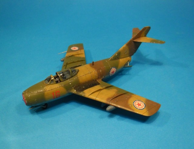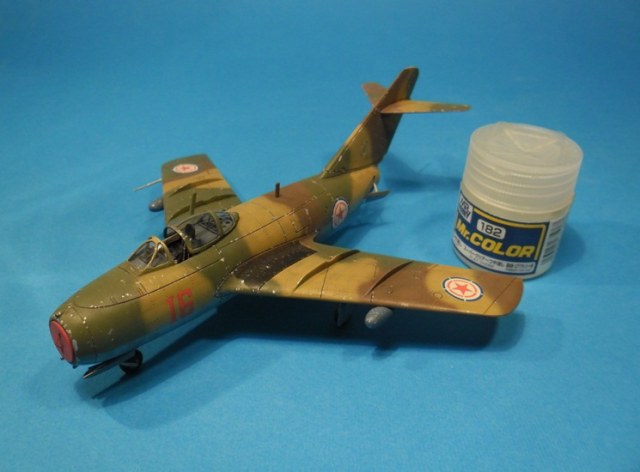 I only corrected the canopy, adding center line on it. A few minutes of work with putty and it looks much better. Some rivets on kit + Eduard PE set + aftermarket decals. MiG is painted with Mr. Color paints, faded with same, and washed with Promodeller Dark Earth, I used Tamiya D set too.