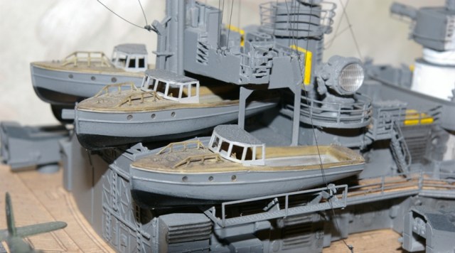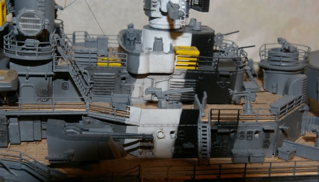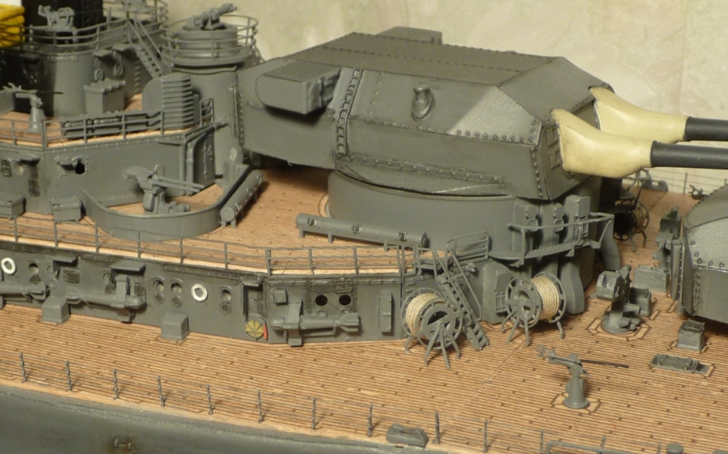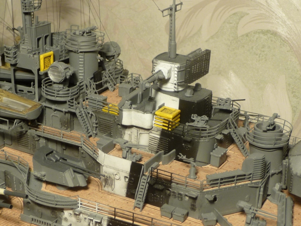 Отлично проработана деталировка на палубе и надстройках. Цветопередача отличная. Немного смутил корпус, а именно замыленная ступенька бронепояса и закругления от борта к палубе (особенно в носовой части). Бегемотовская декаль маловата для такого монстра.