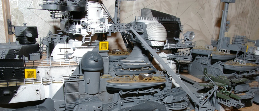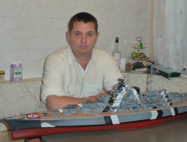 Ну вот и прошли 3 года и 2 месяца с того момента,когда я , увидев по телеку рекламу про модель корабля (первый выпуск за 49 руб.) , повёлся на неё и приобрел первый номер "Бисмарка". На самом деле ,с этого начался мой 2-й этап в моделизме ,назовем его "осознанный" . Характеризуется не просто сборкой ,но и сравнением с оригиналом,более менее нормальной окраской с применением всяких моделистских приёмов. С момента начала сборки "Бисмарка" я случайно набрёл на сайт karopka.ru , узнал,что еще и модели танков,оказывается,бывают,и попутно начал собирать модели БТТ. Все мои модели БТТ собраны во время и за время строительства "Бисмарка". В детстве ,с 4-го по 9 класс я собирал модели самолётов,кое-как красил, и все равно гордился своей коллекцией.Правда,после поступления в Суворовское военное училище ,интерес к моделям угас,и я расстрелял все свои самолёты (а их было больше 30 шт.) из воздушки.
