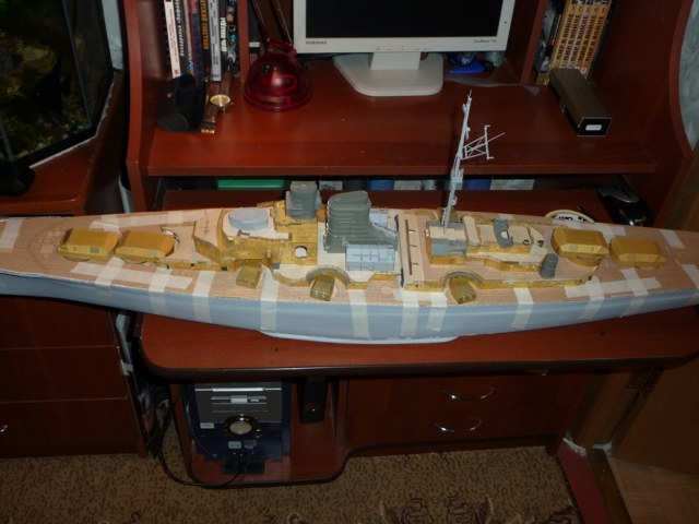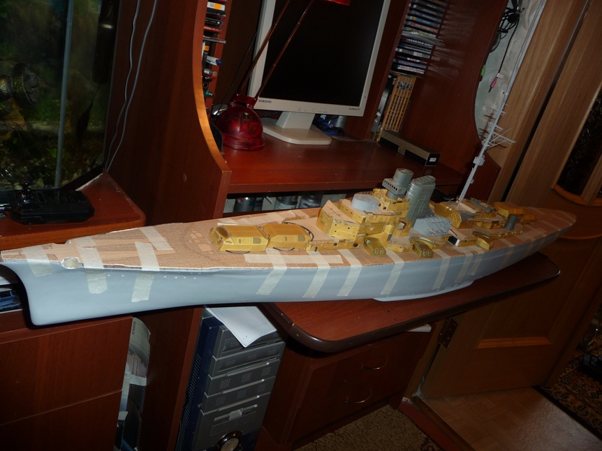 РАБОТА КОНЕЧНО КОЛОСАЛЬНАЯ, У САМОГО ТАКОЙ ХАЧИК СТОИТ ПРОЦЕНТОВ НА 50 ГОТОВЫЙ НО ДО КОНЦА ЕЩЕ ГОДА 1.5 А ТО И 2 НУЖНО. А ВОТ С БРОНЕПОЯСОМ ВЫ БАТЕНЬКА ДЕЙСТВИТЕЛЬНО ОБЛАЖАЛИСЬ. Я КОНЕЧНО ПОНИМАЮ ЧТО С ПЛАСТМАССОВОЙ БРОНИ ПЕРЕКЛЮЧИТЬСЯ НА ДЕРЕВЯННЫЙ КОРПУС И КИЛОГРАММЫ ТРАВЛА ОЧЕНЬ СЛОЖНО,БЕЗ ОПРЕДЕЛЕННЫХ НАВЫКОВ.ДА И ФОТОГРАФИИ ОСТАВЛЯЮТ ЖЕЛАТЬ ЛУЧШЕГО,САМУ ДЕТАЛИРОВКУ ОТСНЯТЬ ПОБЛИЖЕ.НО В ЦЕЛОМ ЗАЧЕТ.