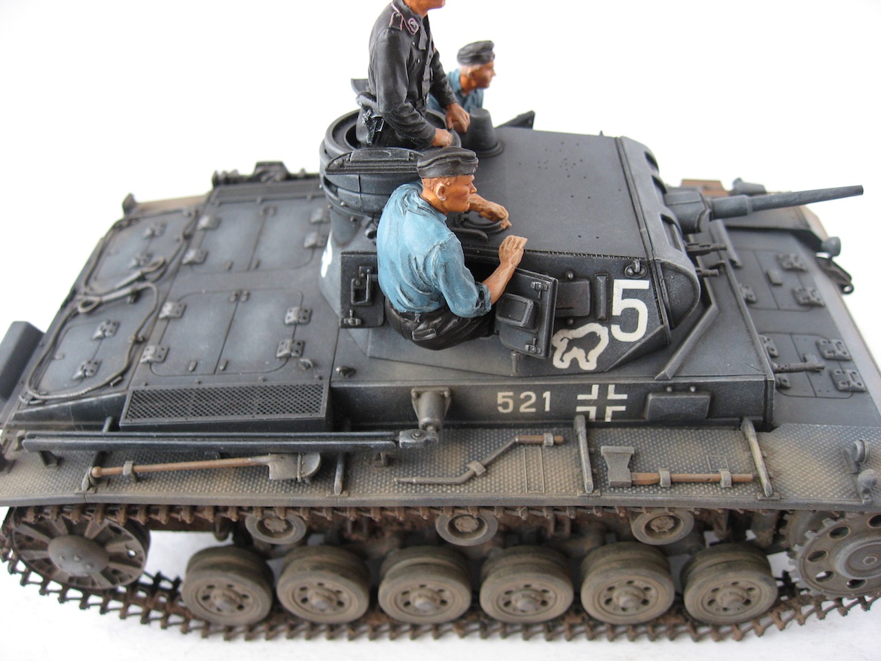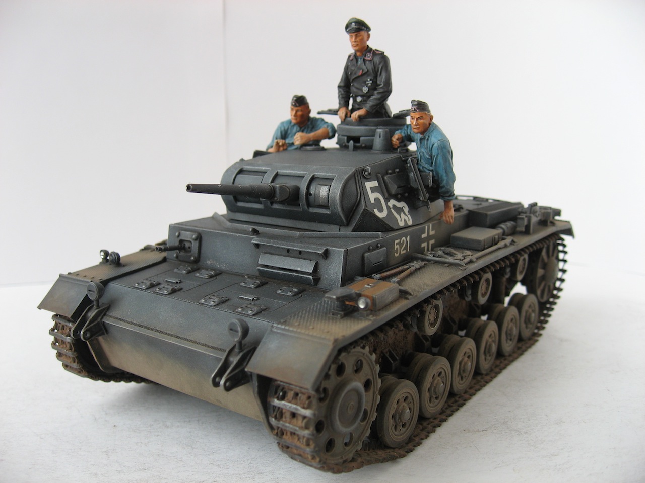 Собирал из коробки. Добавил ствол, пулемет и антенну от RBmodel. Красил акрилом Vallejo. Пигменты MIG. Сухие декали Micro World. Танкисты фирмы ТАНК.