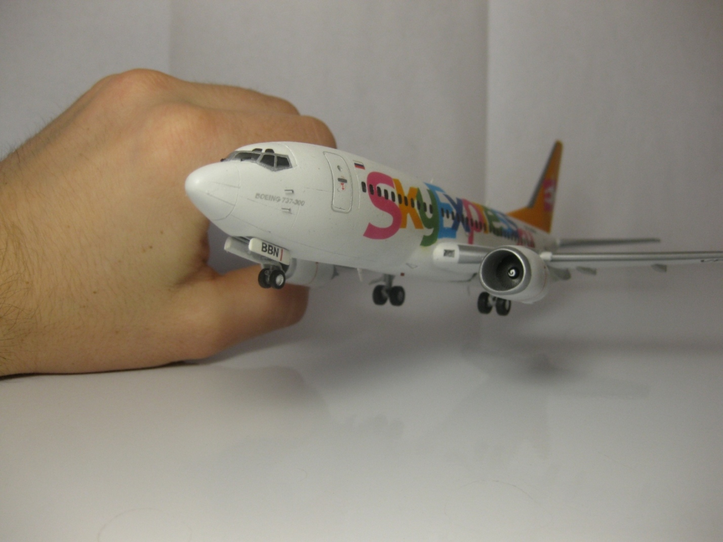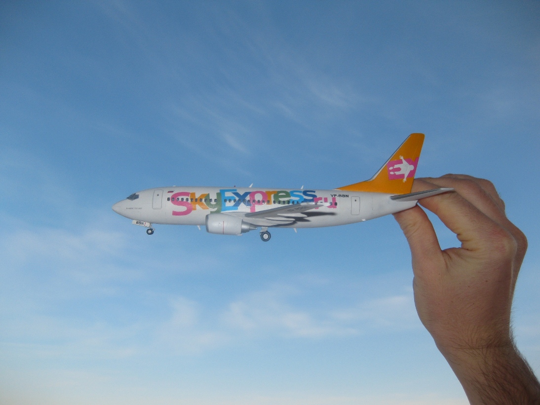 Купив 3 набора ВС Боинг 737-500 и 737-300 от "Восточный Экспресс", понял, что навыки сборки моделей от любимой фирмы "Амодел" мне здесь очень пригодятся. Найти модель от всем известной фирмы "ДАКО" не получилось. Данную модель делал более двух месяцев, ушло очень много шпатлевки, и очень много времени на подгонку стыков плоскостей и стабилизаторов к фюзеляжу, но очень порадовала геометрия модели!