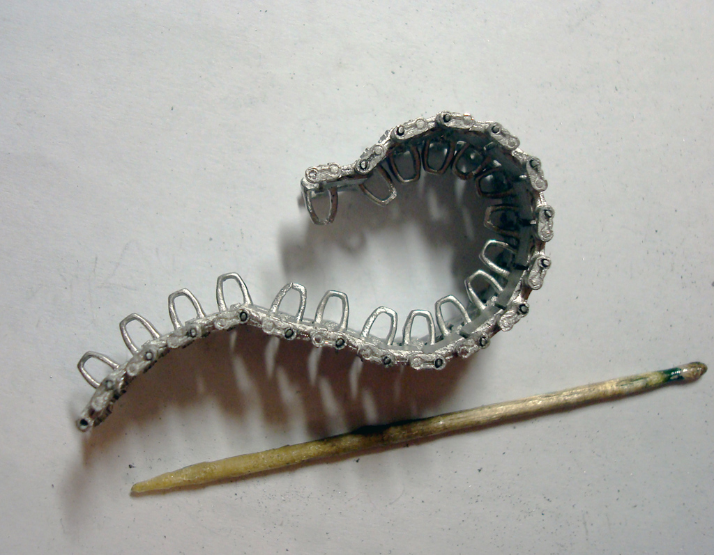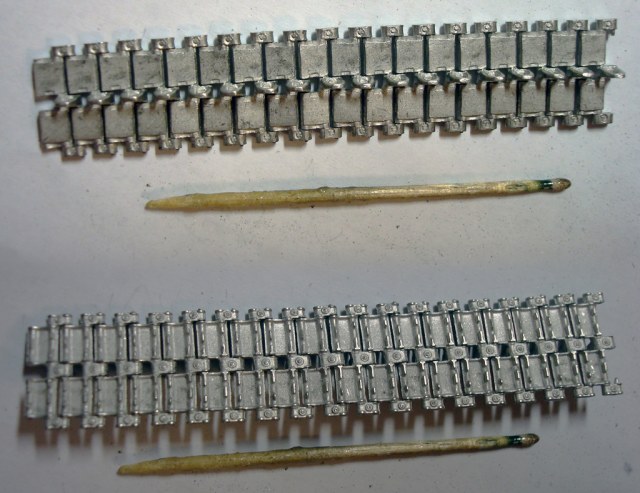 Аналог траков Friulmodel: металлические траки с просверленными отверстиями для соединительных шкворней из проволоки.