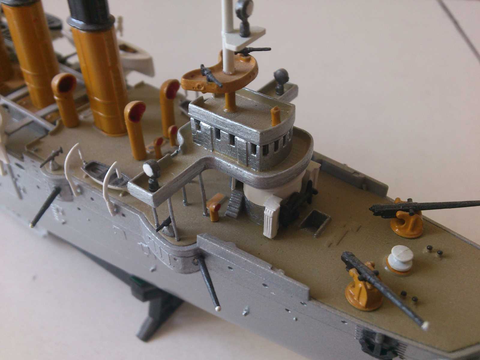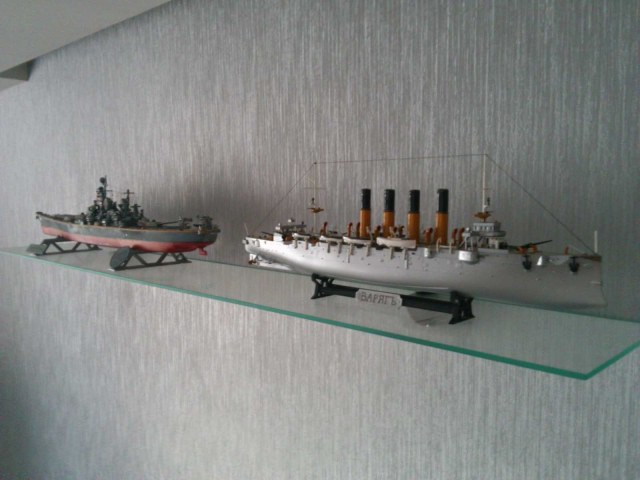 Здравствуйте.. Представляю Вашему вниманию крейсер "Варяг" от Звезды в маштабе 1/350. Модель собрирал несколько месяцев и впервые в таком маштабе. Прошу прощения у любителей кораблей за испорченные мачты и отсутствие такелажа, с ними не задалось изначально, я впервые работал с такими мелкими запчастями. Но на полке смотрится красиво, ничего не видно издалека.... :) Приятного просмотра.