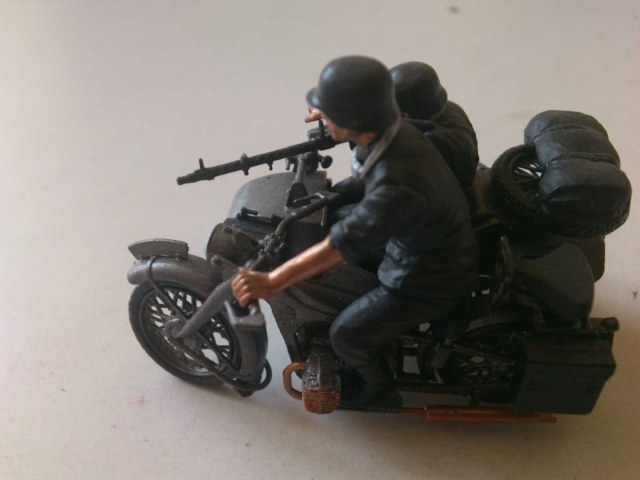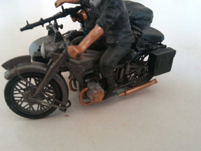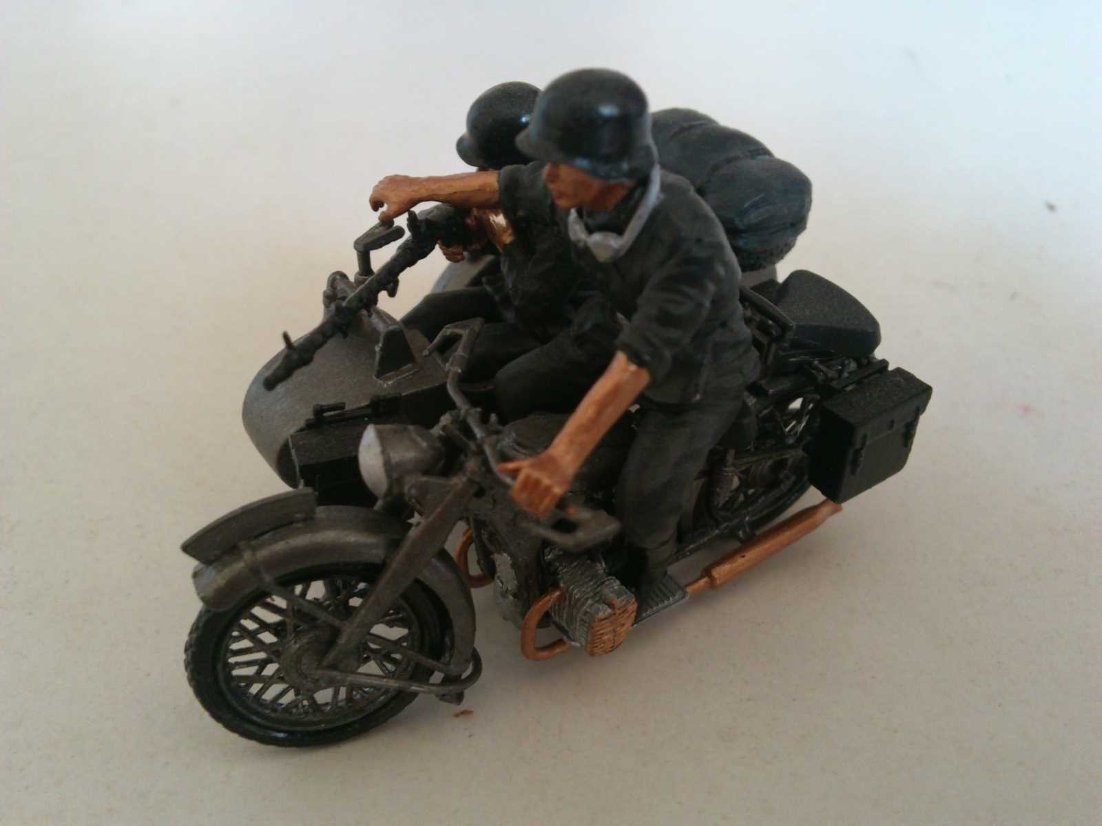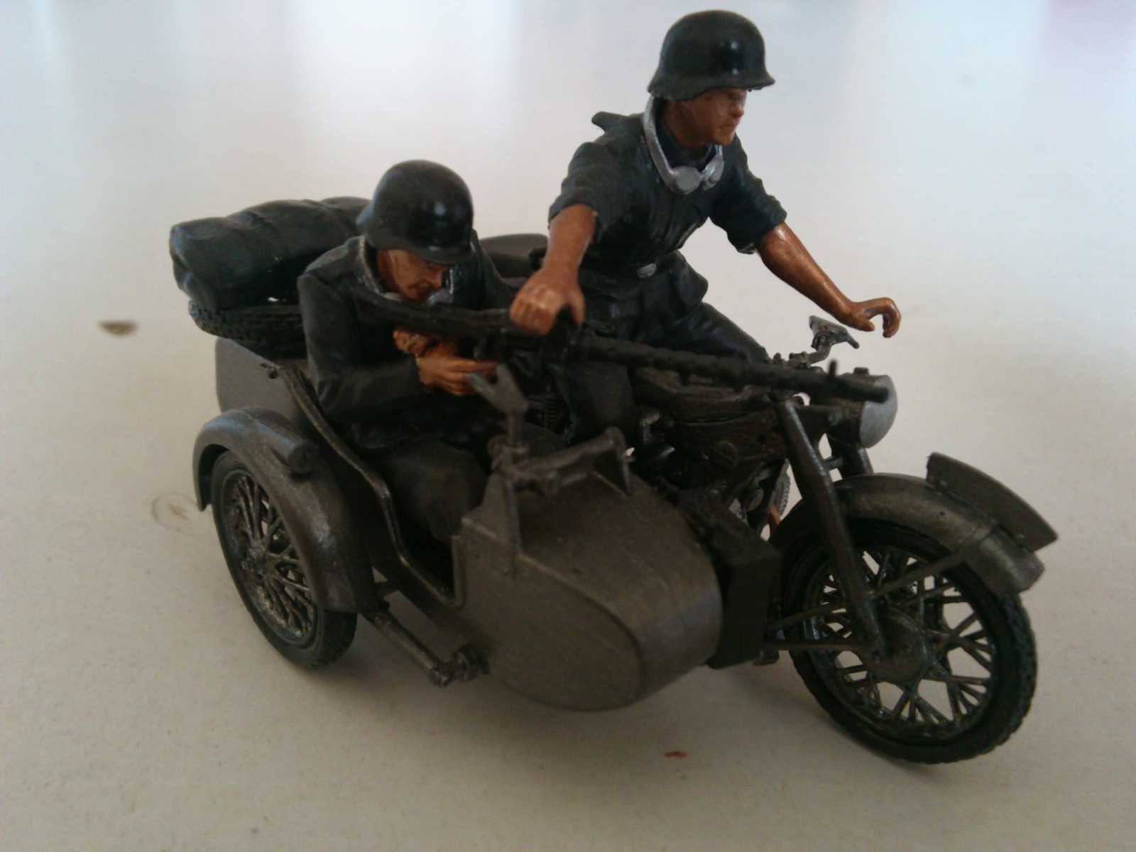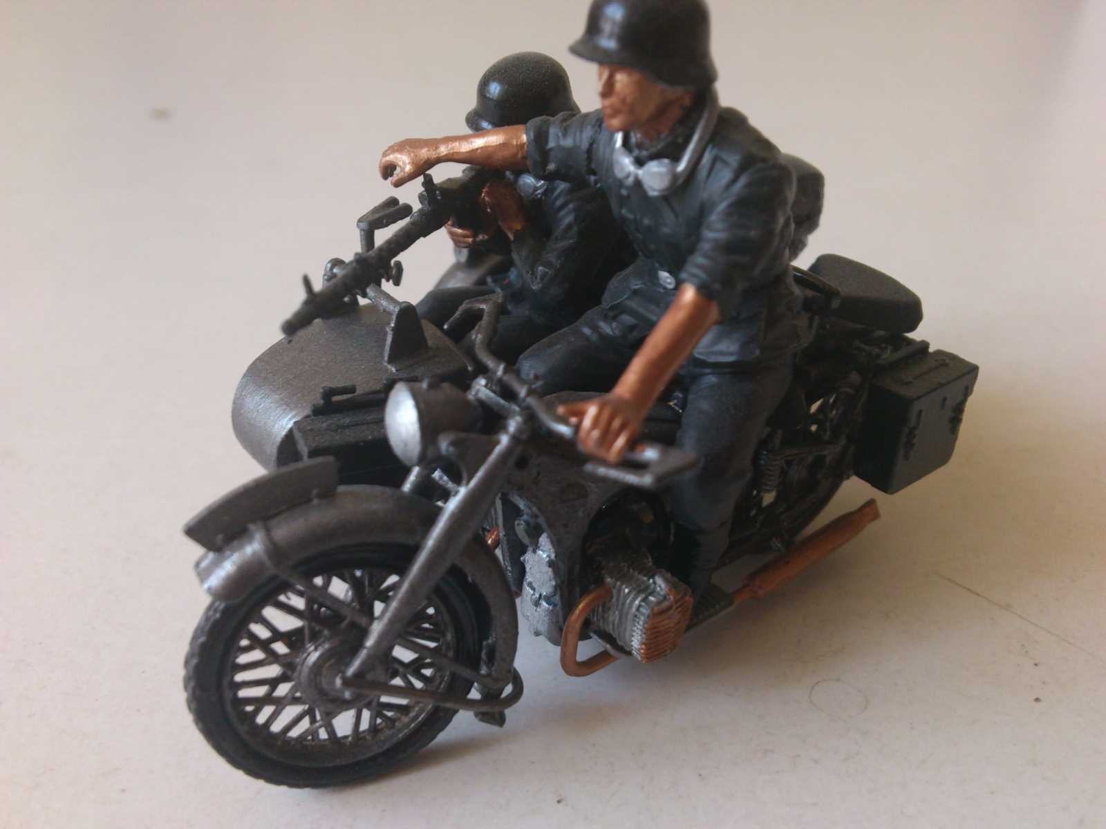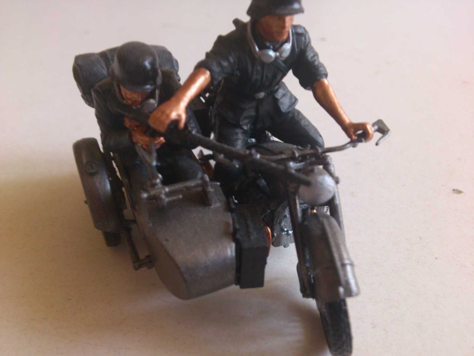 Добрый день. Представляю модель мотоцикла от Звезды 1/35. Я не любитель военной техники, но модель досталось в подарок. Модель достаточно миниатюрна, но со сборкой особых проблем не было. Окраска: касточки, зубочистки. Краска: Звезда, Revell. Цвет рук и лица не удался... Загорелые немцы получились :) Приятного просмотра