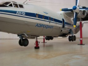Добрый вечер. Предлагаю вашему вниманию ещё один Ан-12 из своей коллекции. Давно я вынашивал идею этой сборки, ещё когда собирал первый Ан-12 в 2008 году. Тогда я не решился на полное хирургическое вмешательство, но с этой моделью решил осуществить свою давнюю мечту. Люблю я этого трудягу, вот и решил его оживить. Оживление длилось долгих четыре месяца ( ежедневно без выходных ), трудностей было предостаточно, но меня это ещё больше заводило. Не судите строго, но перечислять доработки и переделы не стану, их предостаточно, могу сбиться. Я постарался отснять всё, что дорабатывал и переделывал, а смотреть, по моему, лучше чем читать байки. Скажу лишь одно, мне удалось совместить на подвижных частях металл и пластик. Особенно это коснулось стоек шасси. Цапфы и траверсы шасси делались металлическими так как нужен был тугой ход стоек, что бы под своим весом сами не складывались. Вес всего доработаного составил почти 350 грамм. Вес чистой модели плюс деталировка даёт на стойки немалую нагрузку. Мне удалось с этим справиться. Итак, пластическая операция закончена, будем поправляться, а то я с этим самолётом начал со штанов выпадать.