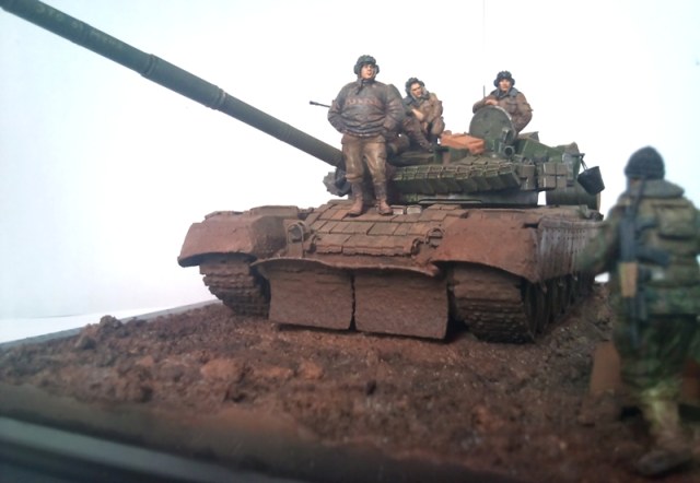 *Классно смотрится-настроение тогдашнего бардака на Кавказе передано в полной мере/по моему./Вояки хороши,колоритные/"грязь" натуральная-только хорошо бы машину немного "притопить"на полсантиметра в "жижу"...Хорошая диорама*