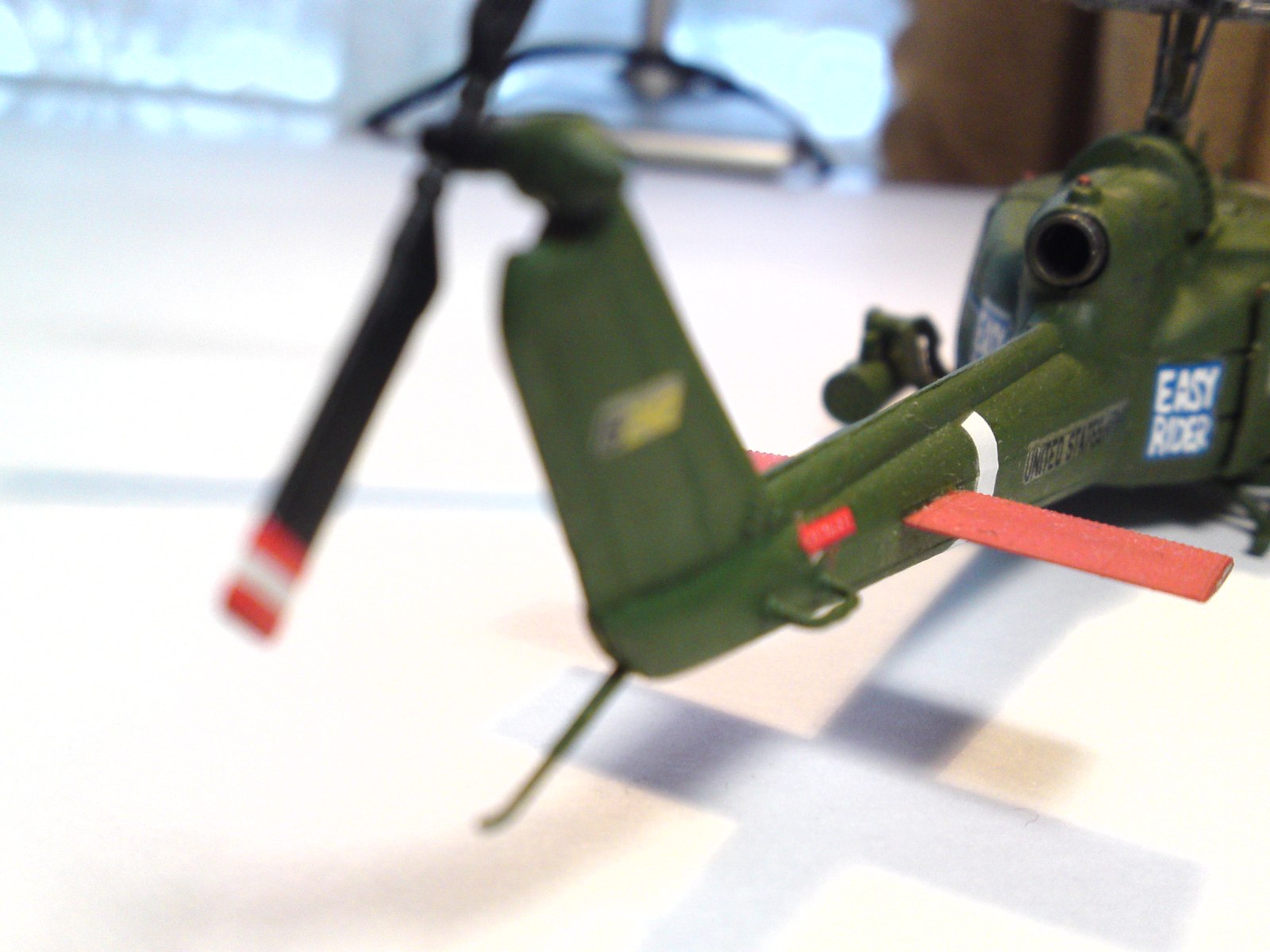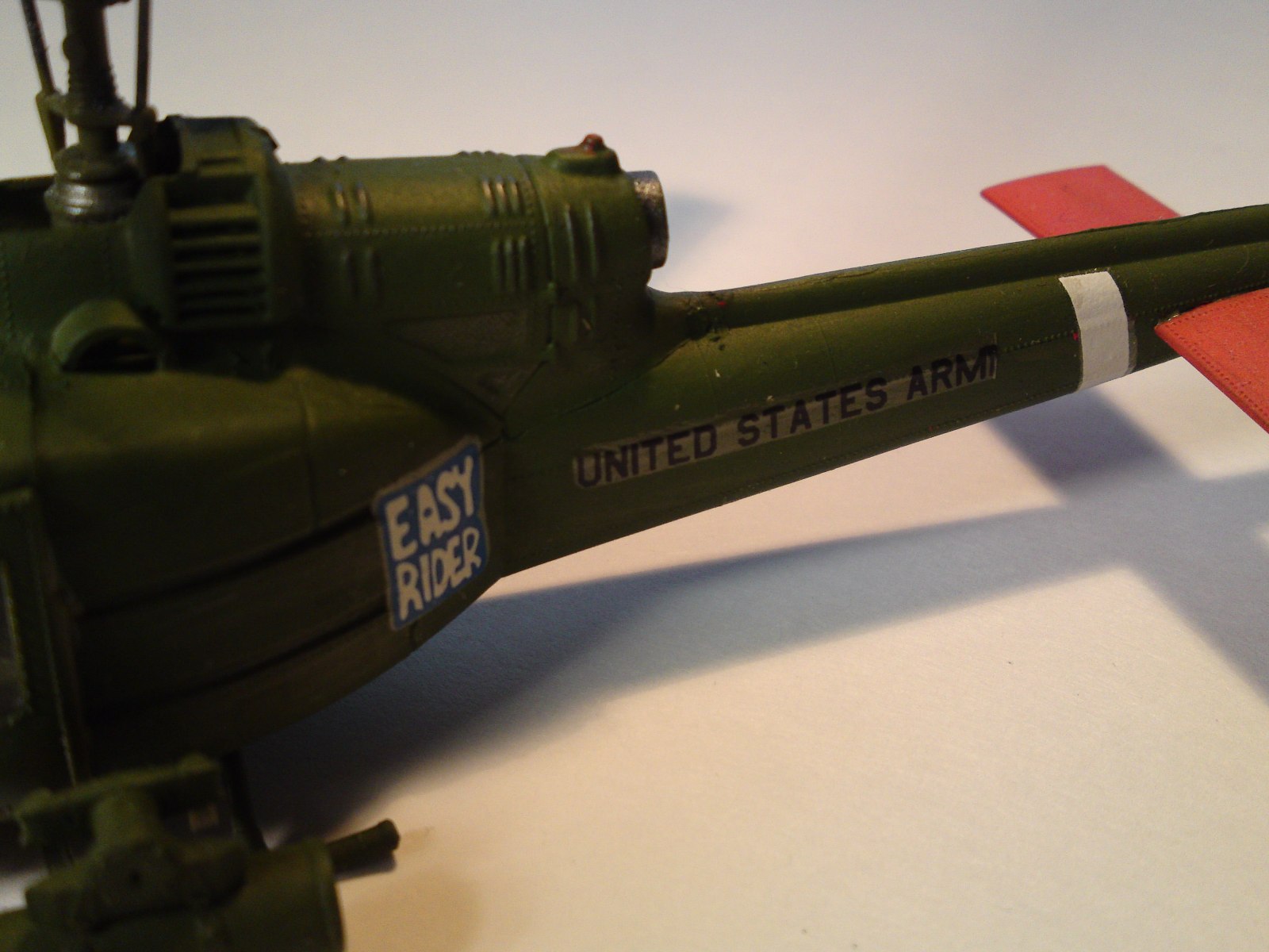И последнее про деки - на хвостовой балке видно у Вас замялась последняя буква Y в надписи "UNITED STATES ARMY" - как вариант и сам думаю тоже самое делать на своей КОБРЕ (моя 3-я модель) (хотя у меня там все значительно хуже и сложнее будет маскировать косяк, чем в вашем случае) - как раз в этом районе хвостовой балки часто появляется нагар от турбины - стоит попробовать попачкать либо МИГовскими или ТАМИЕВСКИМИ пигментами (или опять же коллеги могут подсказать что-нть из "ХЭНД-МЭЙД"