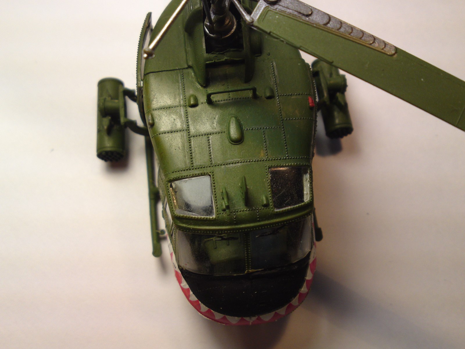 Очень серебрятся декали. Несущий винт окрашен неправильно. Остекление НАД пилотами должно быть прозрачно-зелёного цвета (светофильтр). Окраска достаточно аккуратная. Для кисти. Если это она.