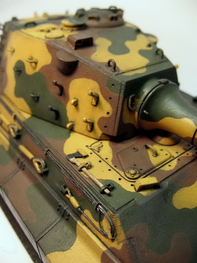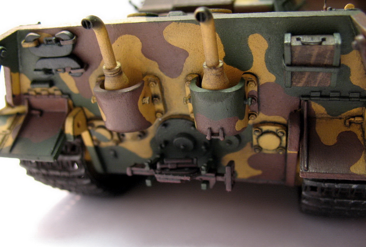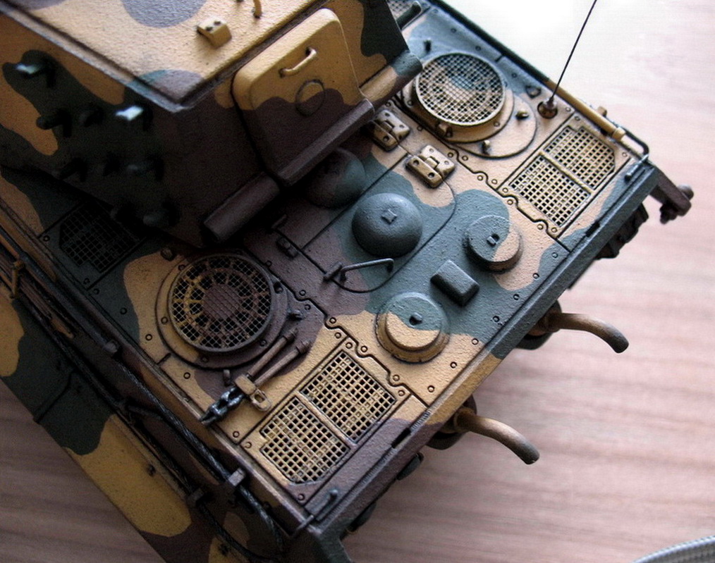 Камуфляж понравился , краску все-таки зря наносили паралоном , слишком большая шагрень получается . Не проработаны см. приборы на ком. башне , баланс фона везде разный , из-за этого работа имеет разные оттенки . Вцелом неплохо получилось , удачи !!!