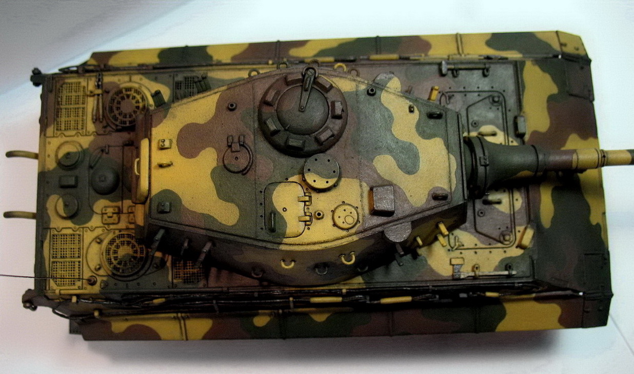 Доброго времени суток всем! Представляю на обсуждение свою очередную модель от Trumpeter тяжелого «концептуального танка» немецко-фашистских конструкторов Е-75. Модель намеренно не имеет следов долговременной эксплуатации и активного участия в боевых действиях. Основной целю проекта было - отработать навыки нанесения камуфляжа.