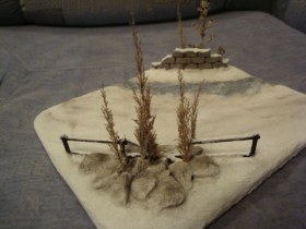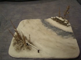 Первый опыт по постройке диорам. В ход шли подручные средства, шпатлёвка, МДФ панели, керамика, шебень с панельного дома, спички, ПВА, столовая сода, худ. пастель, трава, найденная ночью во время прогулки с девушкой)))