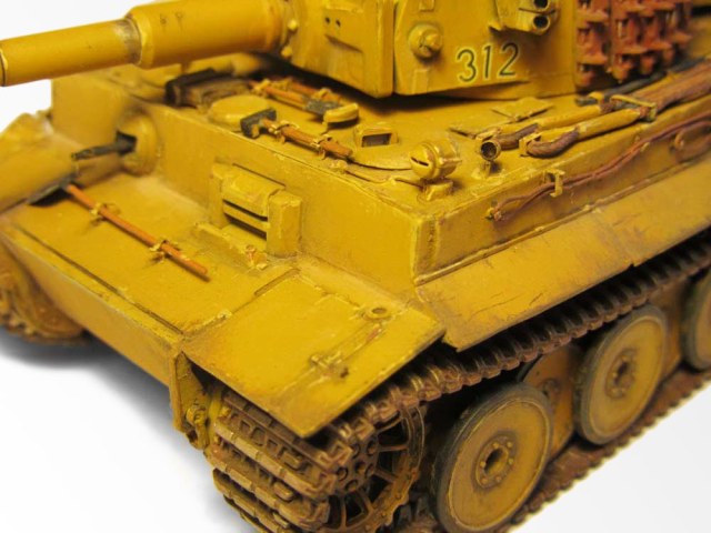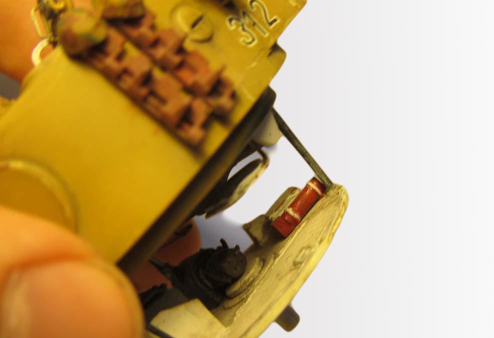 Из дороботок- интерьер башни,с нуля,не слишком точный,главное что бы люки были не пустые.Также пришлось попотеть над траками(высверлены отверстия в клыках).Ну и, конечно, всякая мелочёвка ,как гранатомёты,проводка,крепления запасных траков и Т.Д.