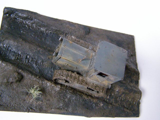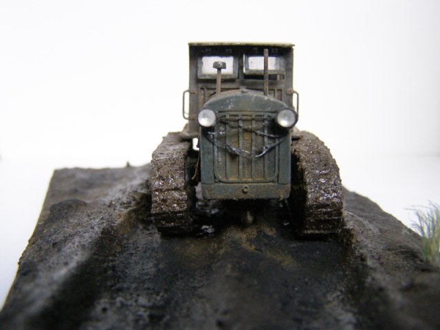 Из листового алюминия изготовлен заново капот и дверцы капота. На ходовой тоже из алюминия защитные пластины. Переделано сцепное уст-во – жаль грязюкой замазюкал. Навесил на передок буксирный трос (нашёл на военных фотках).Новая выхлопная труба и труба воздушного фильтра. Фары - elf