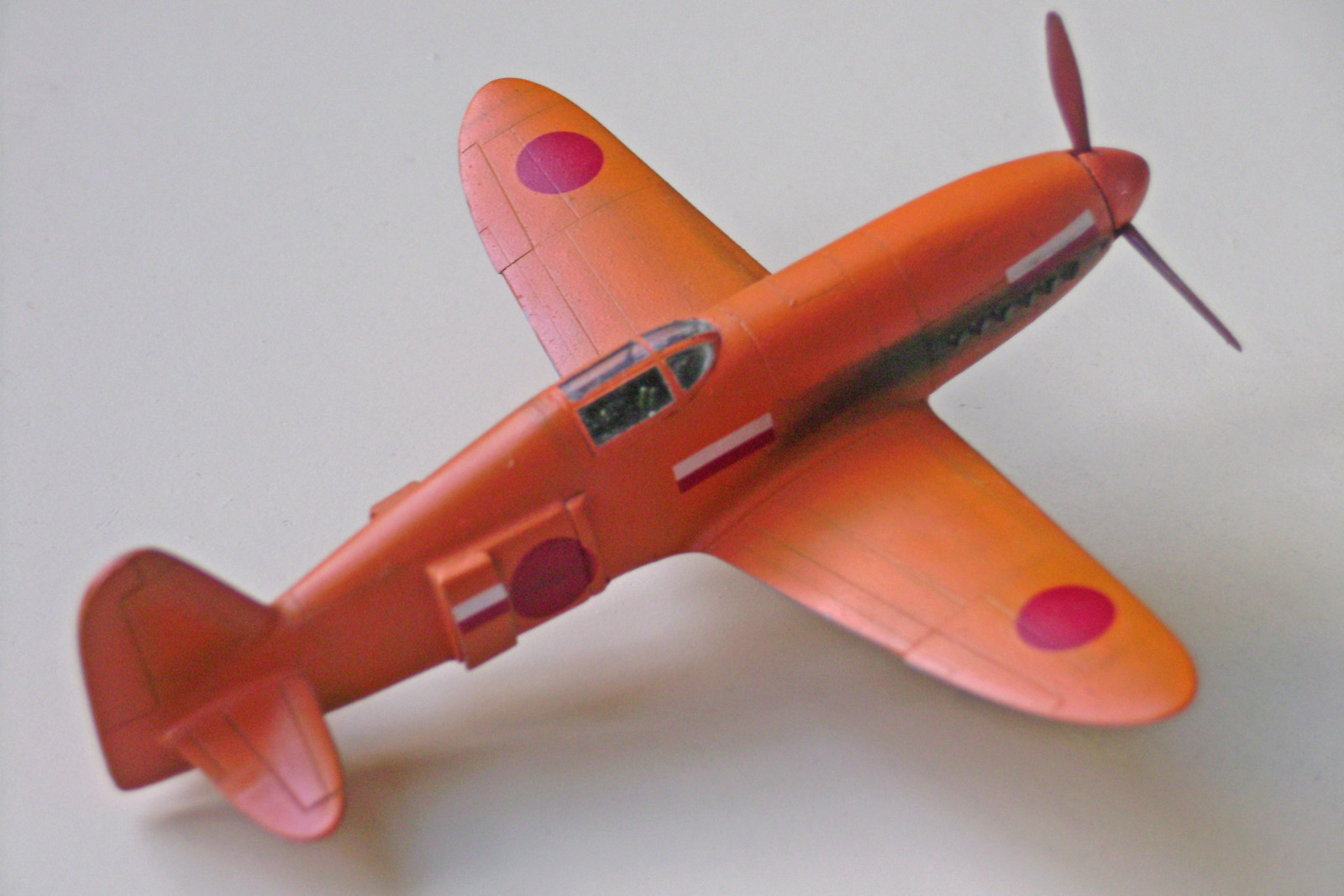 При работе над данной моделью трудностей не было, шпатлевка использовалась (Tamiya) только при нивелировании шва половинок фюзеляжа. Модель делалась в прошлом году, а пару месяцев назад шпатлевка стала проявляться под краской, что собственно говоря видно на фото верха модели.