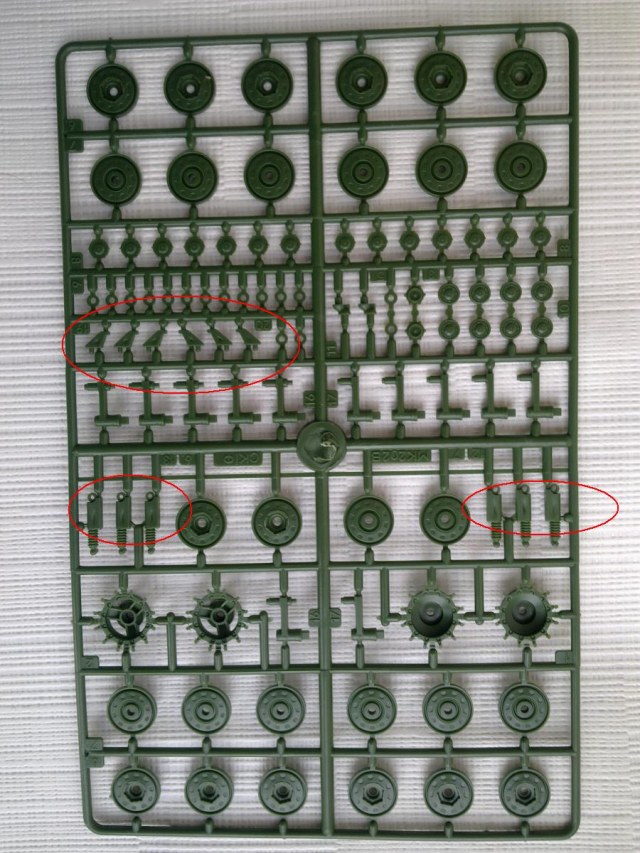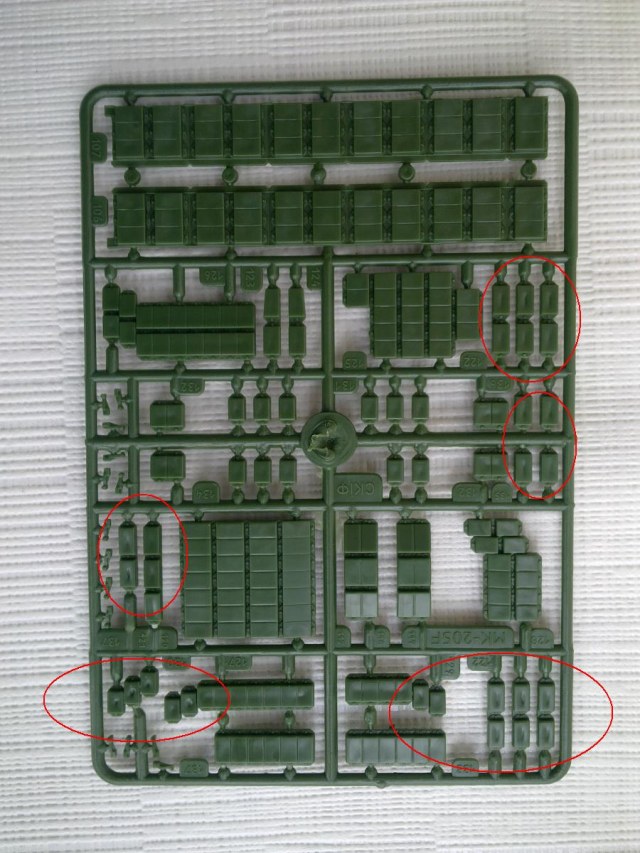- шесть литников с деталями, из пластика зелёного цвета.