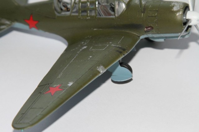 Глаз резануло лишь наличие сколов немного за границей металлических частей на фюзеляже (он обшивался березовым шпоном). И замки на руле поворота не выделены - моя промашка тоже (за всем не уследишь).