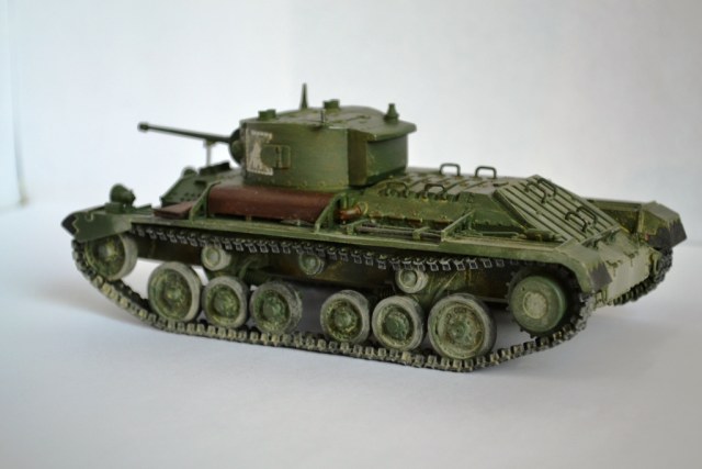 Неплохо получилось, тем более из Моделиста. По-моему, не хватает более контрастной смывки, особенно вокруг клепок и вопрос по защите глушителя - она же, вроде, с самой трубой глушителя не соприкасалась, с чего бы ржаветь? (хотя может быть и я не прав). Пружины ходовой надо было бы больше металликом пройтись - на них же краска враз слетала (если их и красили).