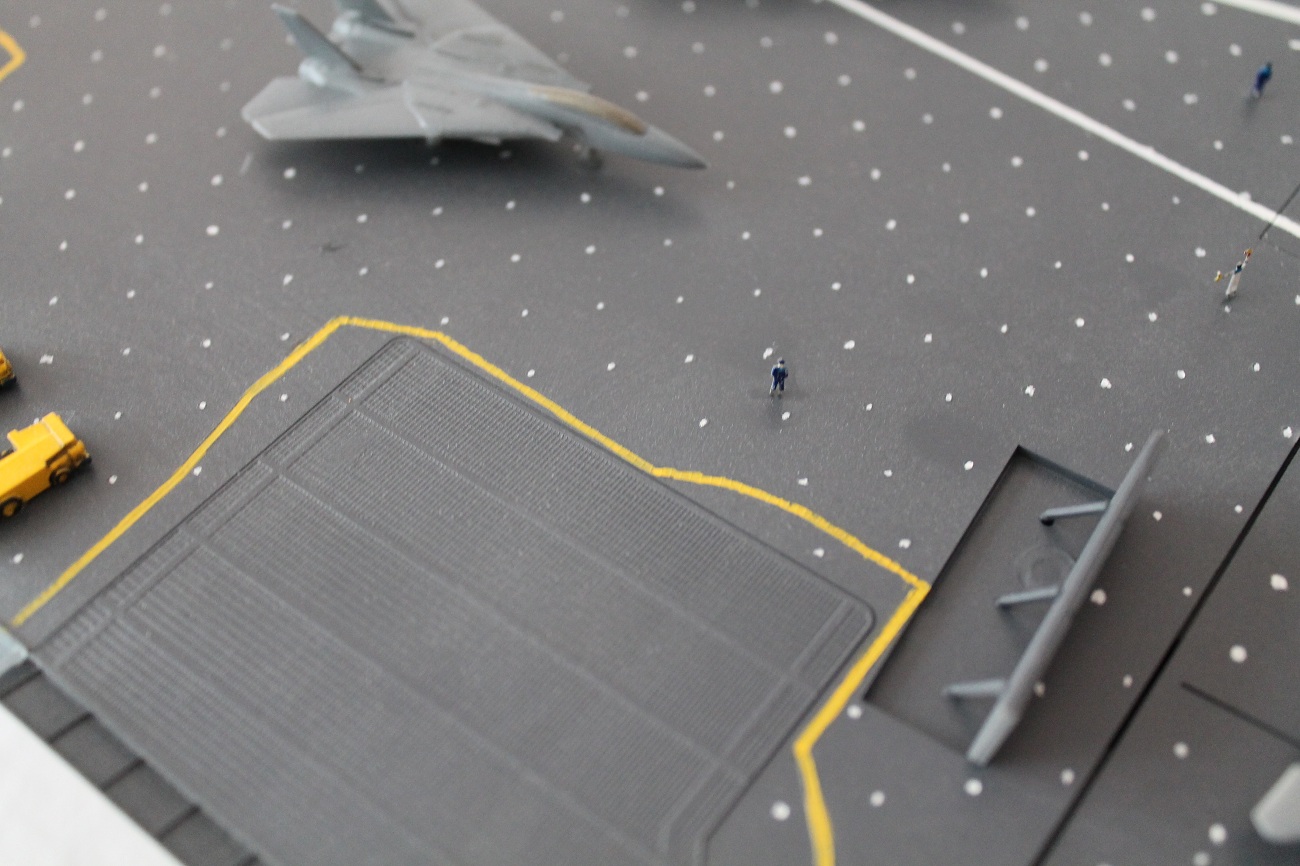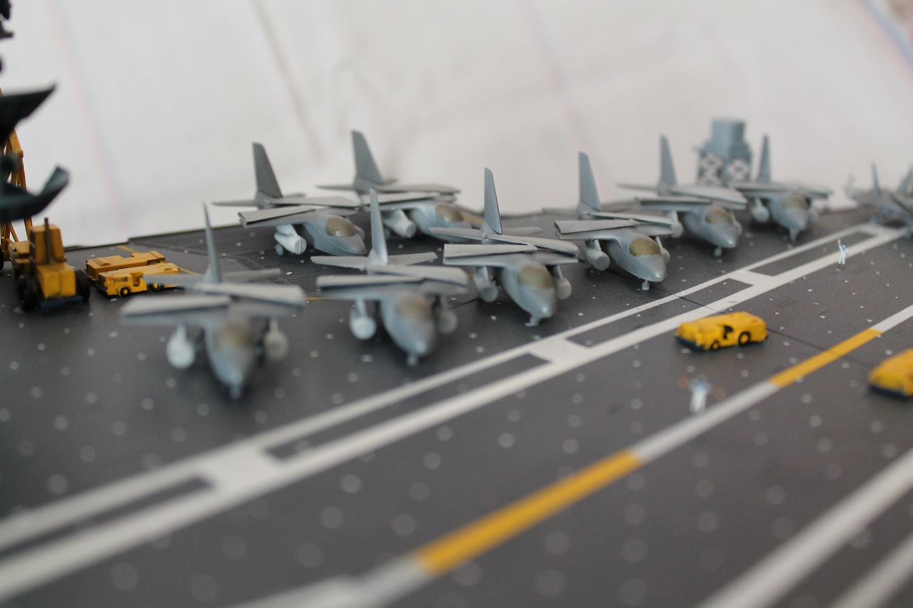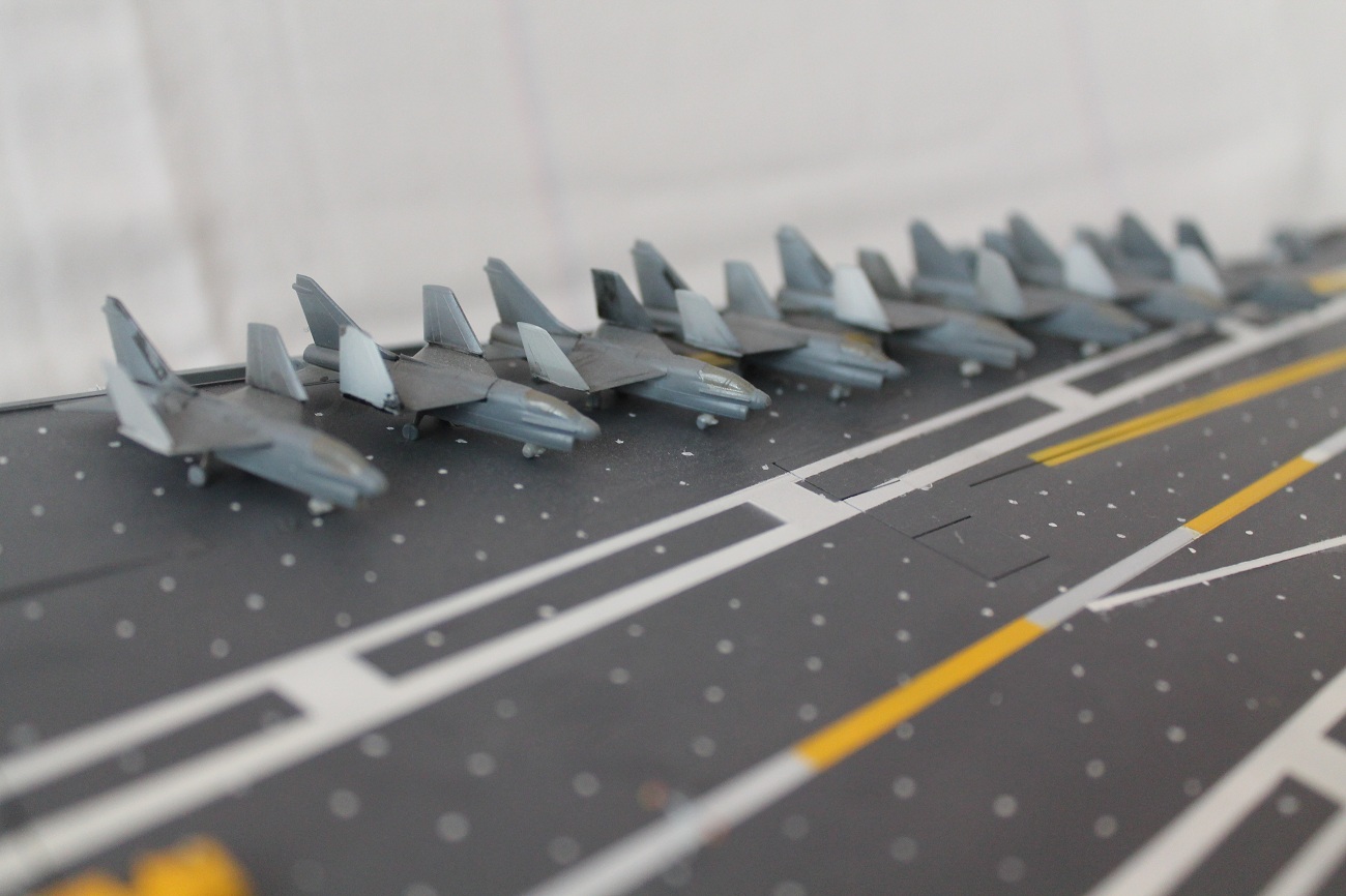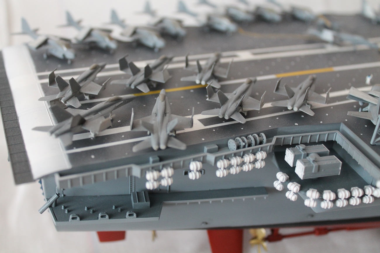 Интересно у меня есть "Кити Хок" от Звезды и там есть декали на самолеты знак ВВС США защитного цвета, хоть и не на все самолеты.Специально посмотрел еще раз. А здесь этого нет хотя эта модель и крупнее Кити от Звезды.