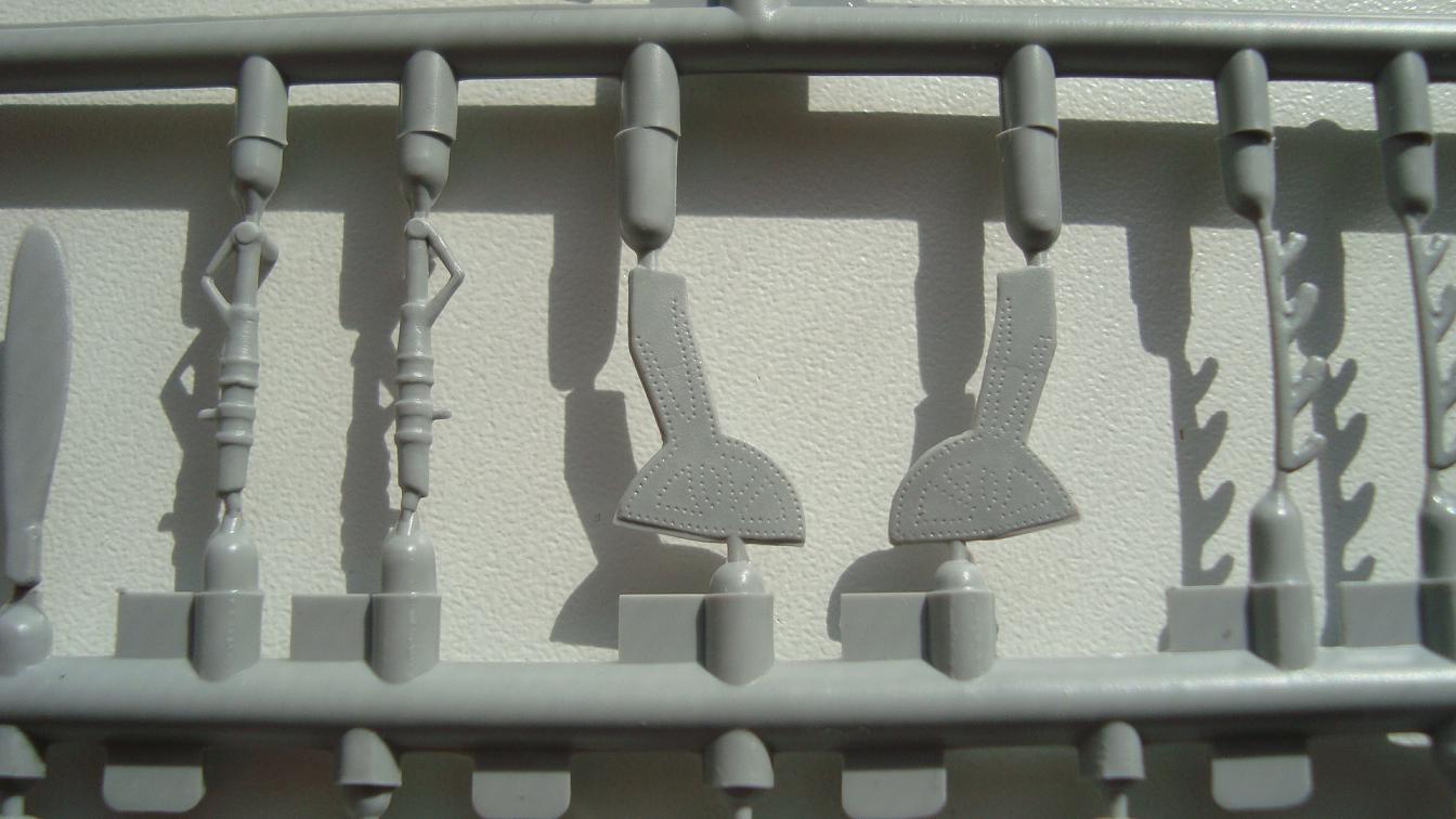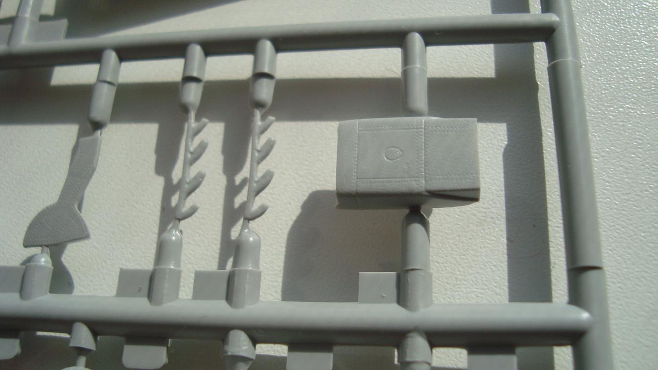 Проработка неплохая, правда местами присутствуют брачки отлива в виде борозд и недоливов. Но - не критично. Имитация клепки, провиса; как по мне - смотрится неплохо. Фонарь дан тремя отдельными деталями, что несомненно - плюс (при желании сделать фонарь открытым).