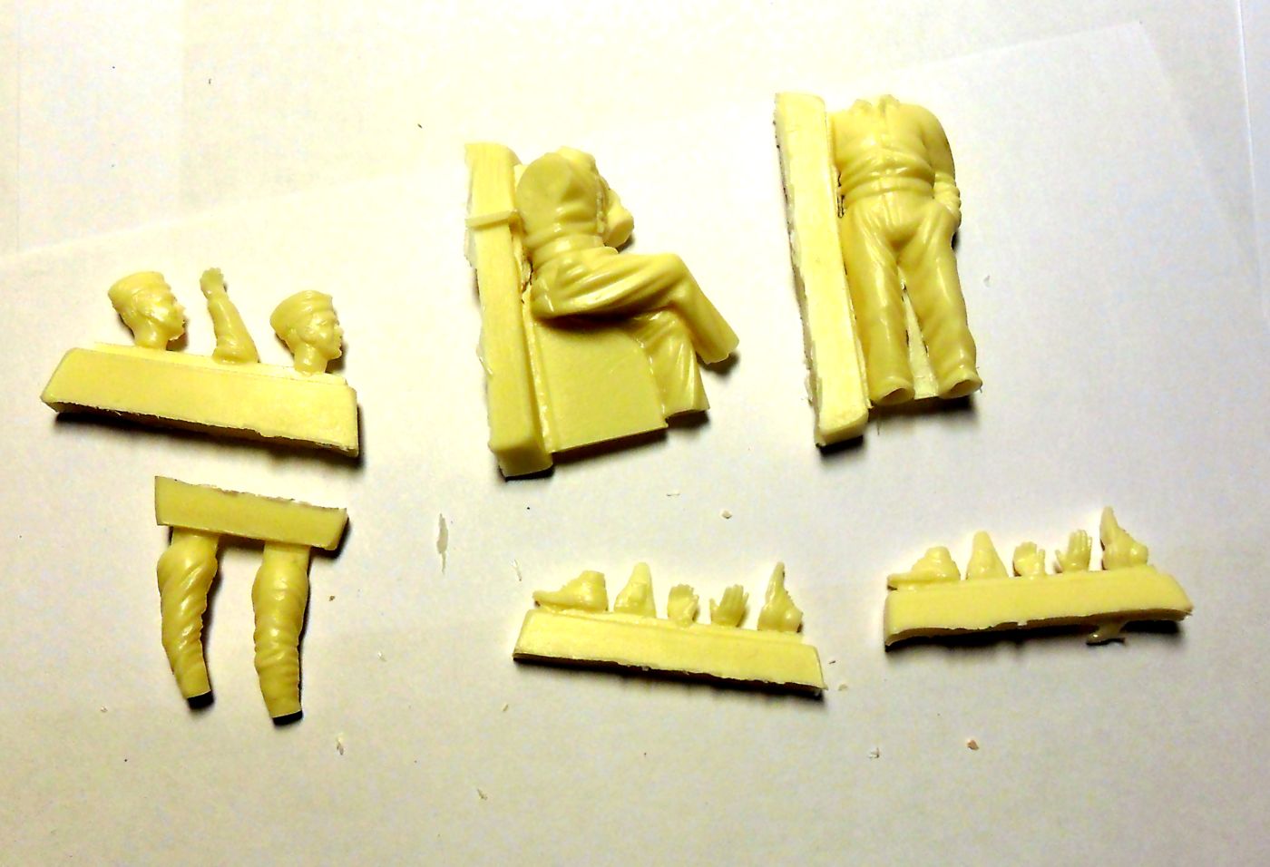 Также в наборе идут смоляные фигурки двух членов экипажа из смолы желтоватого цвета. Фигурки мне не понравились: сильно замыленные, рожи дебильные, по комбезам и пилоткам не поймешь - то ли немцы, то ли чехи.