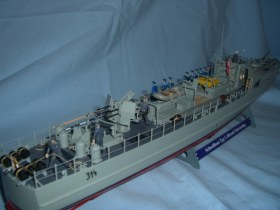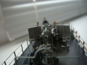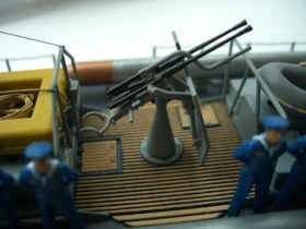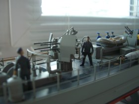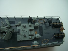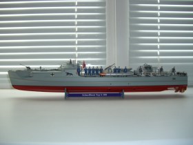 А судно- в общем плане- класс! Деталировка привлекает. Хотя при близком просмотре видна игрушечность из за отстутствия везеринга и следов эксплуатации. Есть ощущение, что некоторые детали вообще не крашены. Зенитка, например.