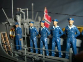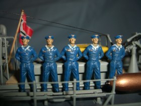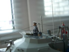 Привет земляку!Есть немного замечаний.Леера не айс.В таком масштабе нужно было паять,получилось бы и ровнее и изящнее.Вообще некоторые доработки не помешали бы-точеные стволы например.И очень важное-срочно фигурки покрыть матовым лаком.А то они как в клеенку одеты,кукольность некоторая.А так не плохо.