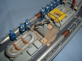 Хорошая модель, хоть сейчас на выставку. А нанесение следов воздействия погоды и работы личного состава,дело опыта. Может это проказы вспышки, торпеды выглядят нарядно- подарочными.