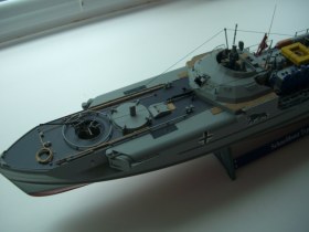 Да смывки не хватает,собрано и покрашено очень аккуратно,но есть одна неточность на этих катерах крестов вроде не было.Кресты рисовались только на сухопутной технике,в военно морских силах Германии балочные кресты рисовали только на самолетах морской авиации.А на кораблях ставились тактические номера в лутшем случае рисовались орлы,или так называемое народное творчество,примеры:рубки немецких подводных лодок.Это вроде ваш,КСТАТИ ОБРАТИТЕ ВНИМАНИЕ НА БРОНЕЛИСТЫ НАД ЛЕЕРАМИ В БОЕВЫХ ВЫХОДАХ ВСЕ КАТЕРА ХОДИЛИ ИМЕННО ТАК.ЭТО,ТАК НАЗЫВАЕМАЯ ЗАЩИТА ОТ ОСКОЛКОВ.