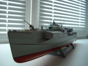 Автору вопрос: положили ли балласт в корпус для устойчивости на воде? Этот катер обладает отличными мореходными качествами. Модель позволяет сделать корпус с палубой полностью герметичными. По поводу выделения расшивки: расшивка на модели у производителя отсутствует как таковая. А редкий для кораблей 72-й масштаб этой модели делают её практически незаменимой для живых морских фотосессий или диорам с авиамоделями в 72-м -"Каталиной", "МБР-2" или другими летающими лодками. Не сочтите за саморекламу, вот, о чем я говорил.