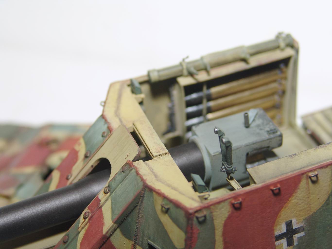 Сделано очень интересно,смелый перепил,единственно ствол орудия выбивается из общей картины своей чистотой,хотя все могло быть.Очень понравилось!